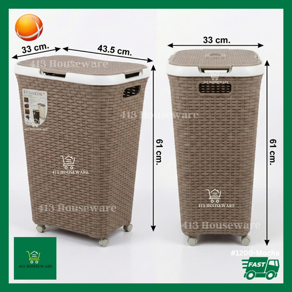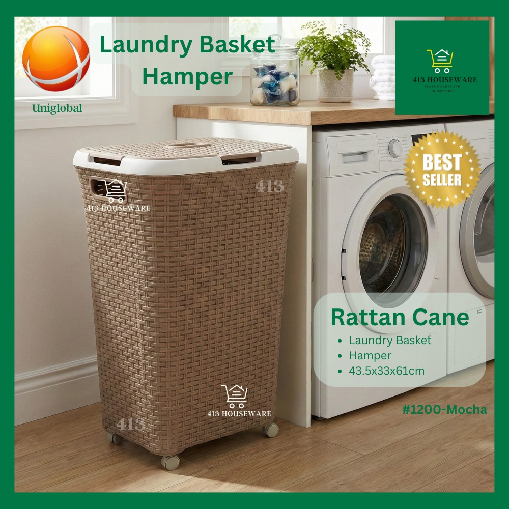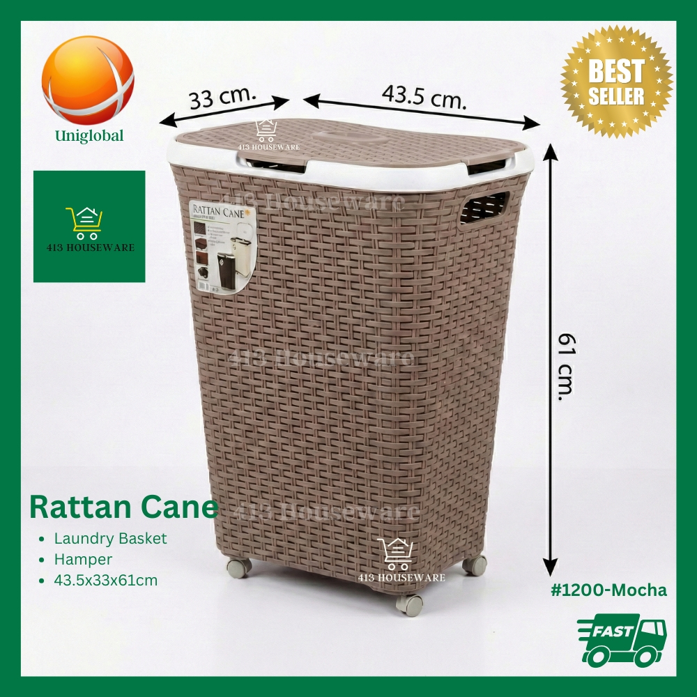Rattan Mocha Laundry Basket Hamper w/ Wheels Cover Lagayan ng Labahan Labada - Uniglobal #1200 Mocha