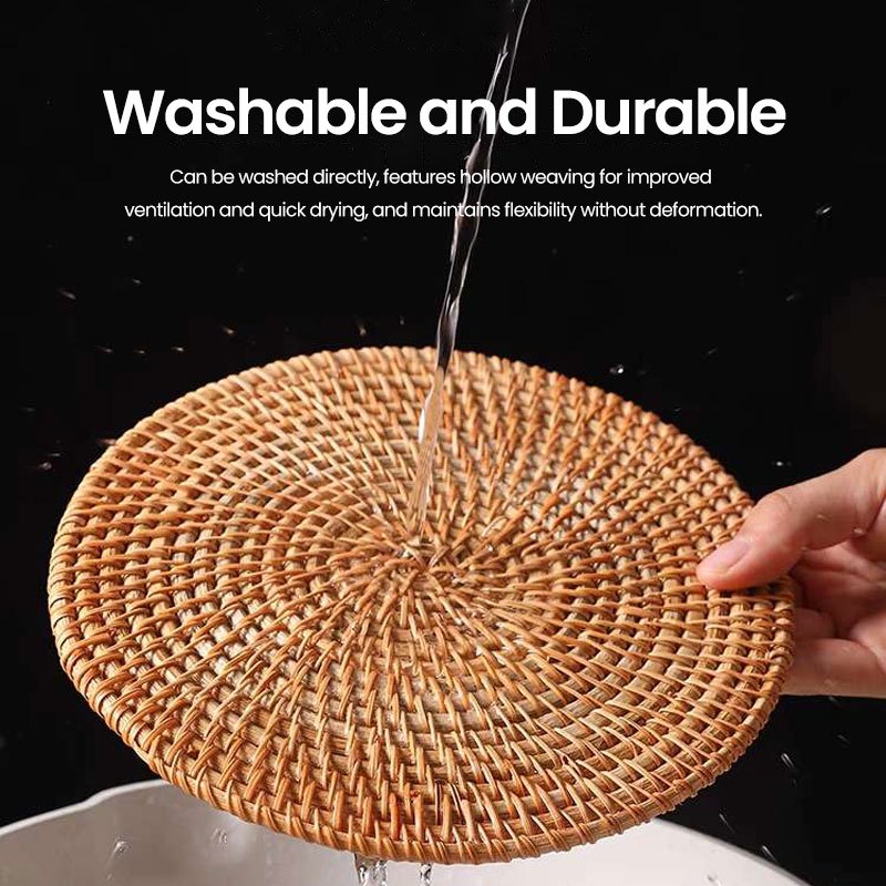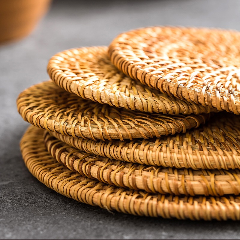 Rattan Woven Coaster Heat Insulation Round Table Mat Coffee Cup Mat Handmade Round Placemat