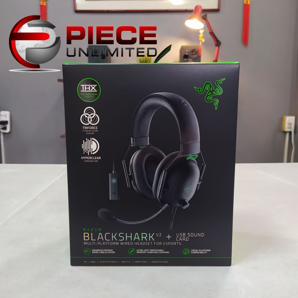 Razer BlackShark V2 (2021) USB + 3.5mm SOUND CARD Wired gaming Headset | Piece Unlimited Store