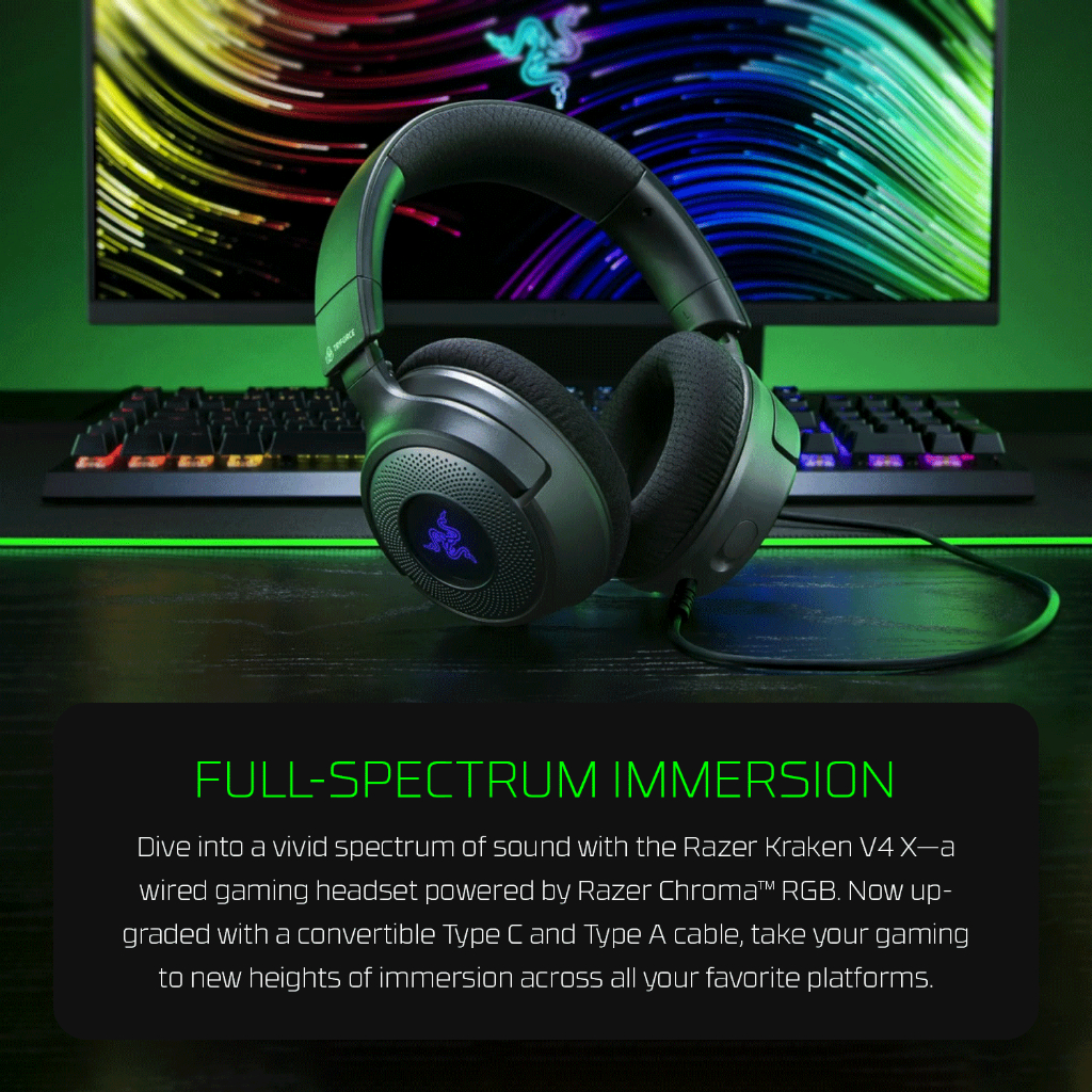 Razer Kraken V4 X - Wired Gaming Headset - Minecraft Edition