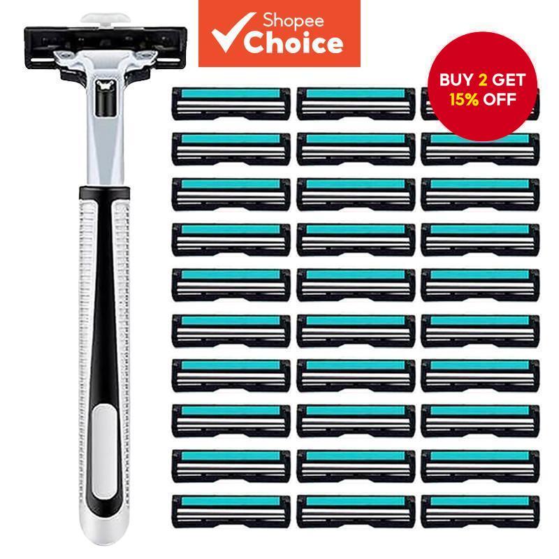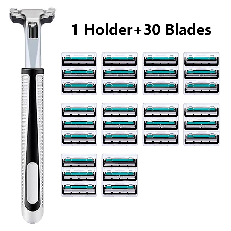 Razor and Blade Set with Wall Holder – 1 Razor, 30 Blades, Self-Adhesive Hook for Bathroom