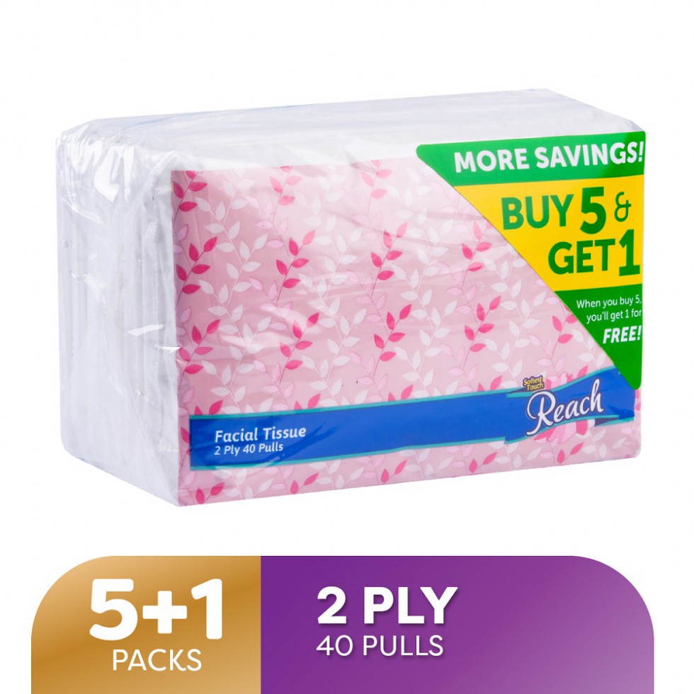 Reach Facial Tissue Travel Pack 2Ply 40Pulls 5+1