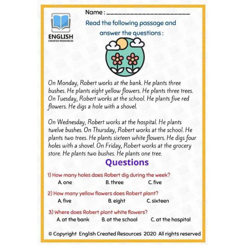 Reading Comprehesion For Grade 2 *40 pages *COLORED *
