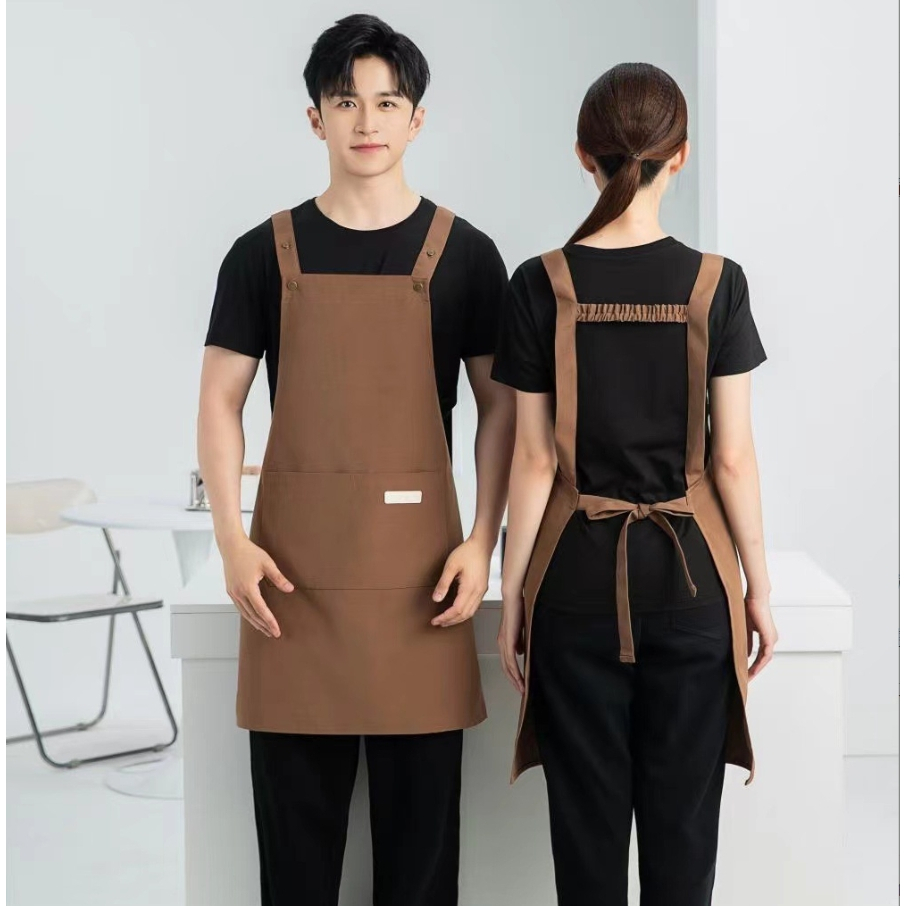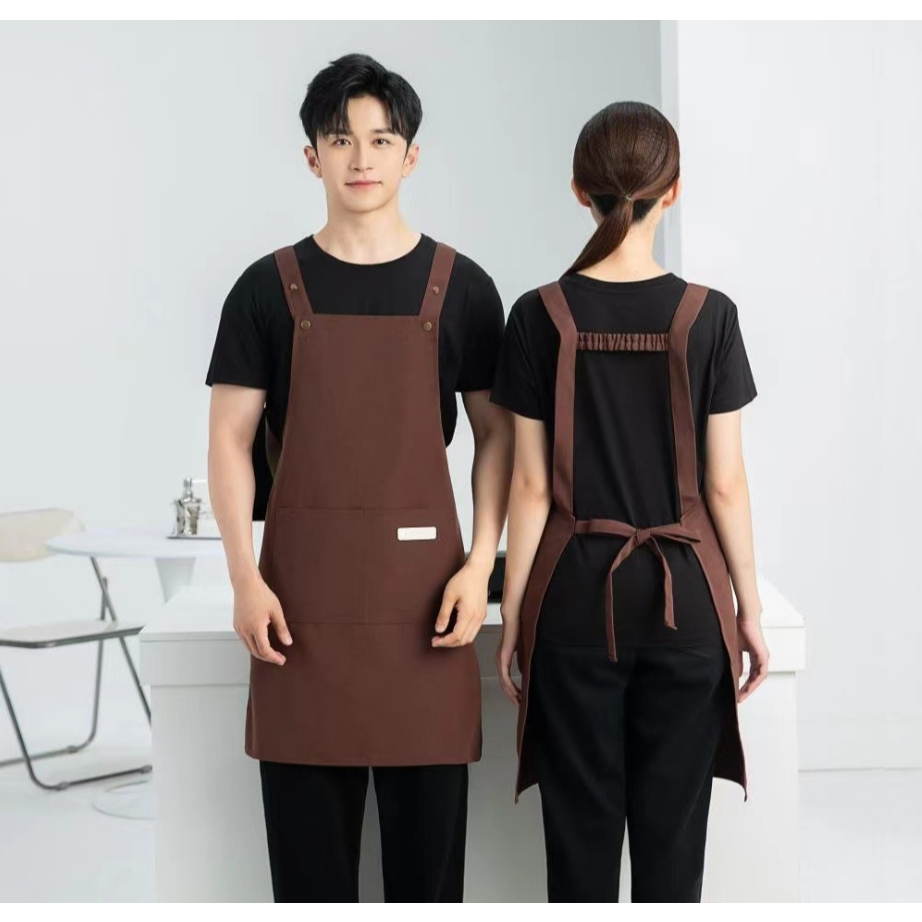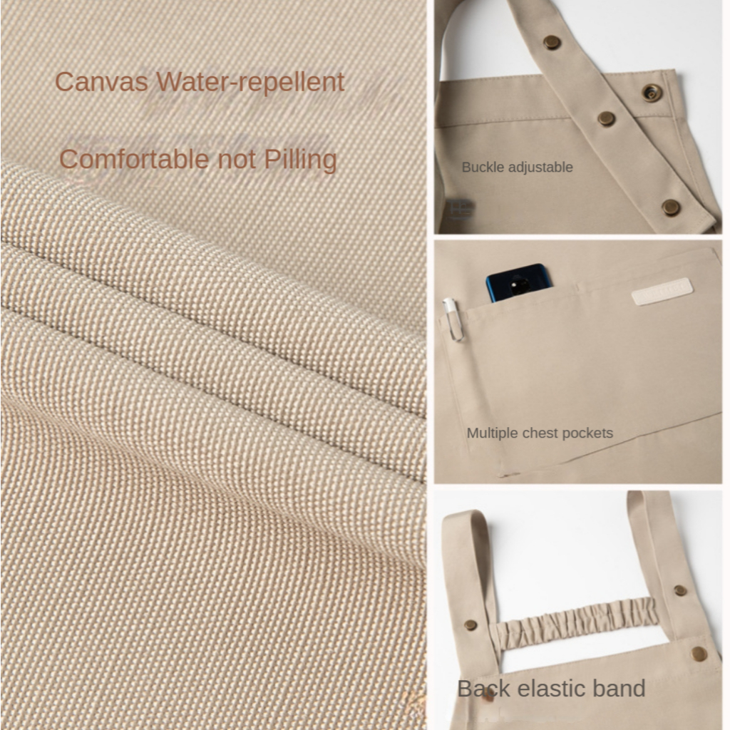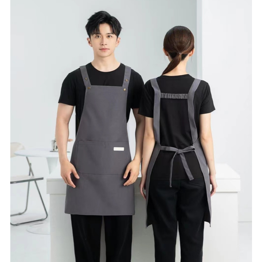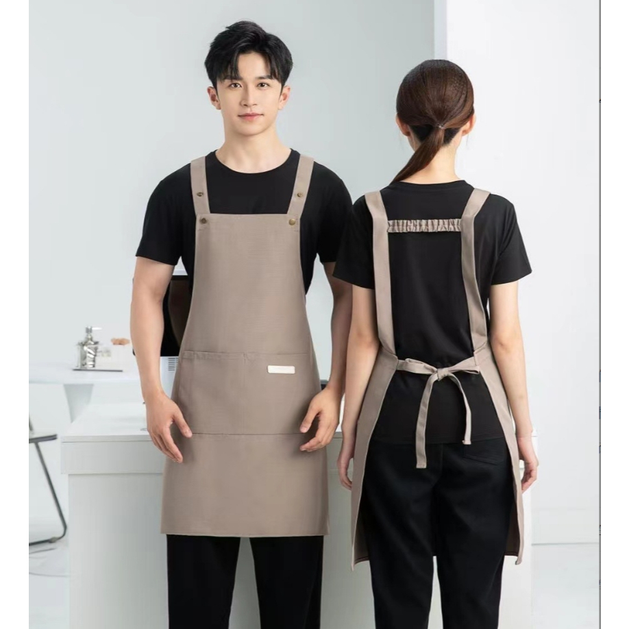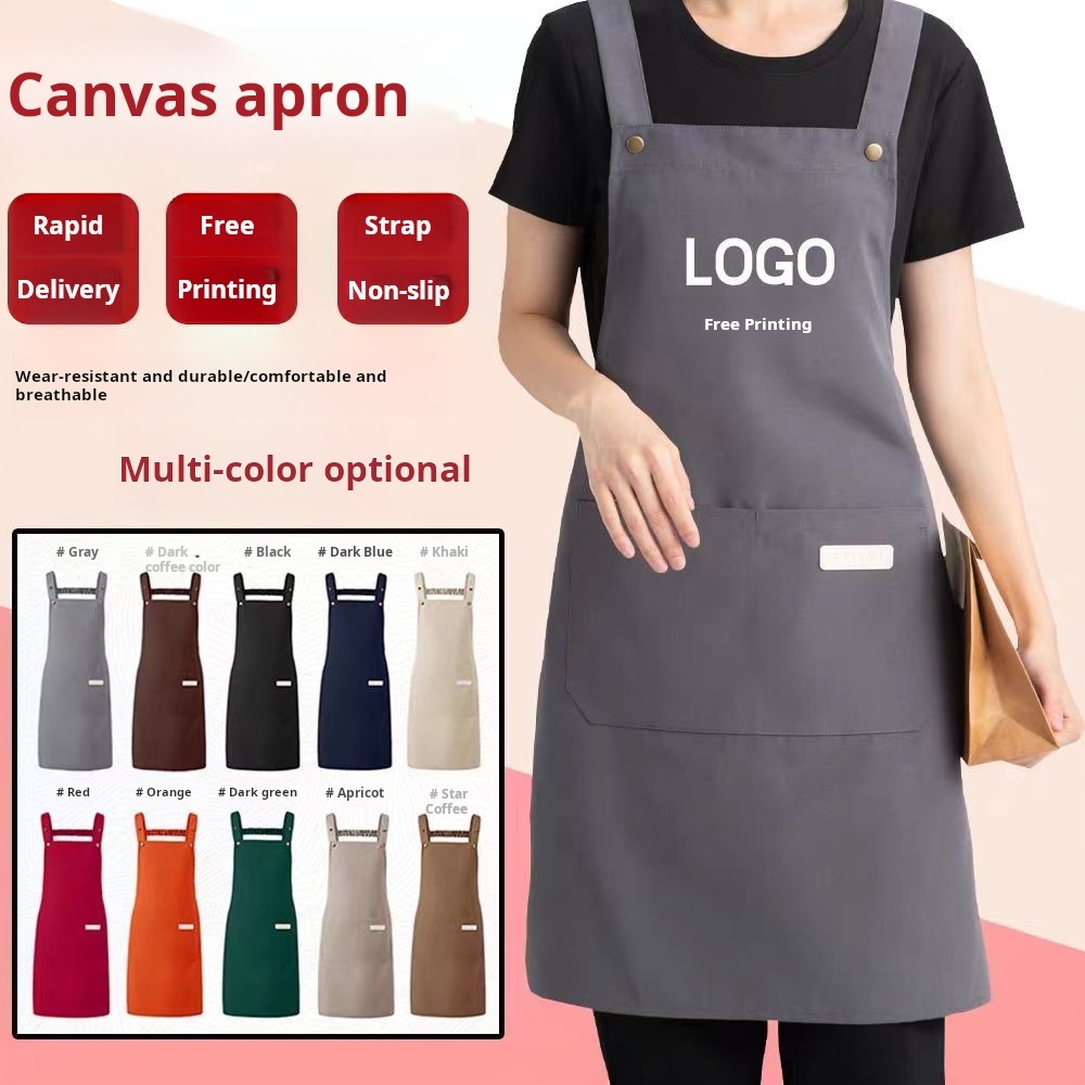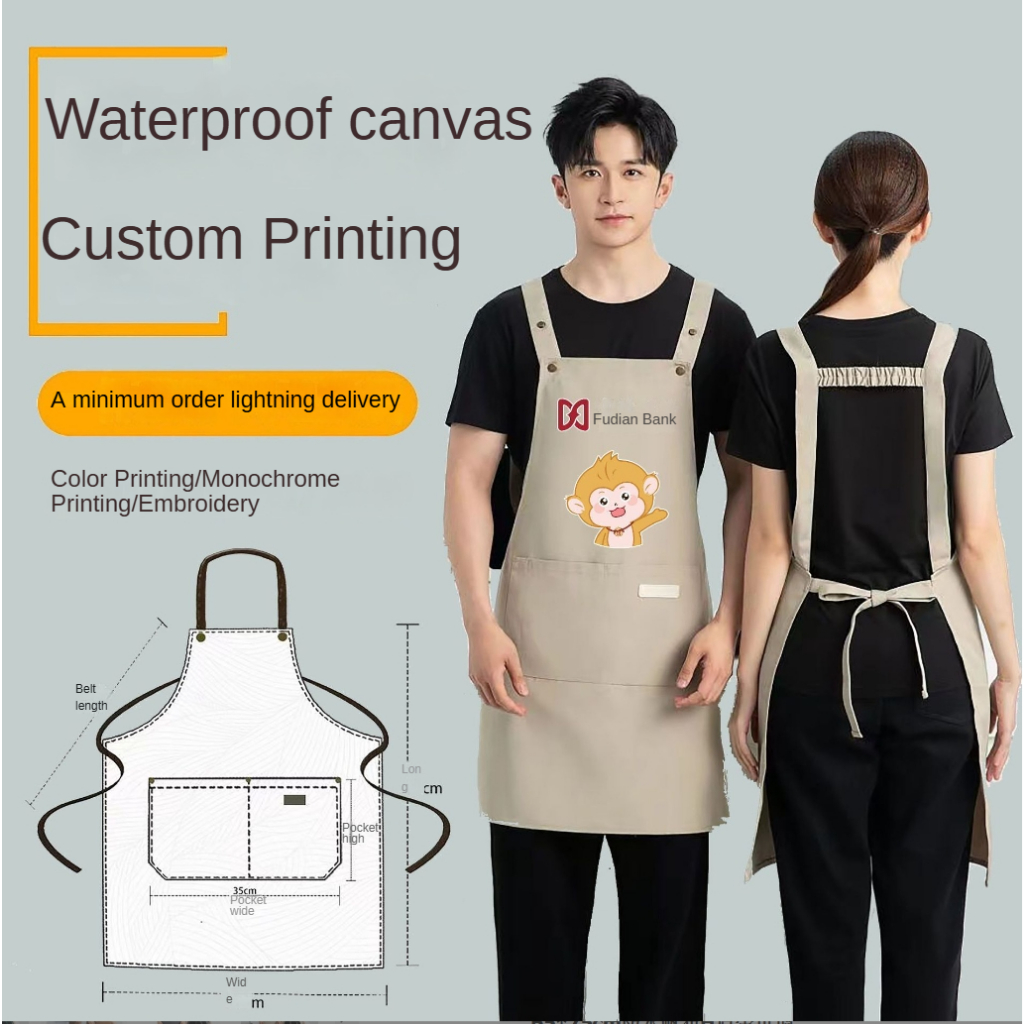 Ready Stock Canvas waterproof apron custom logo printing catering baker cafe splash-proof work apron female home kitchen cooking apron male