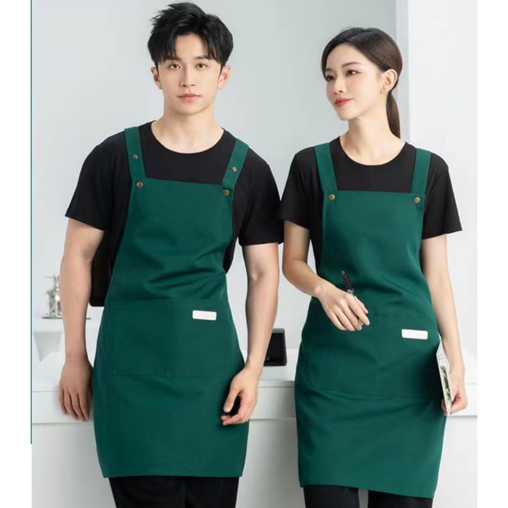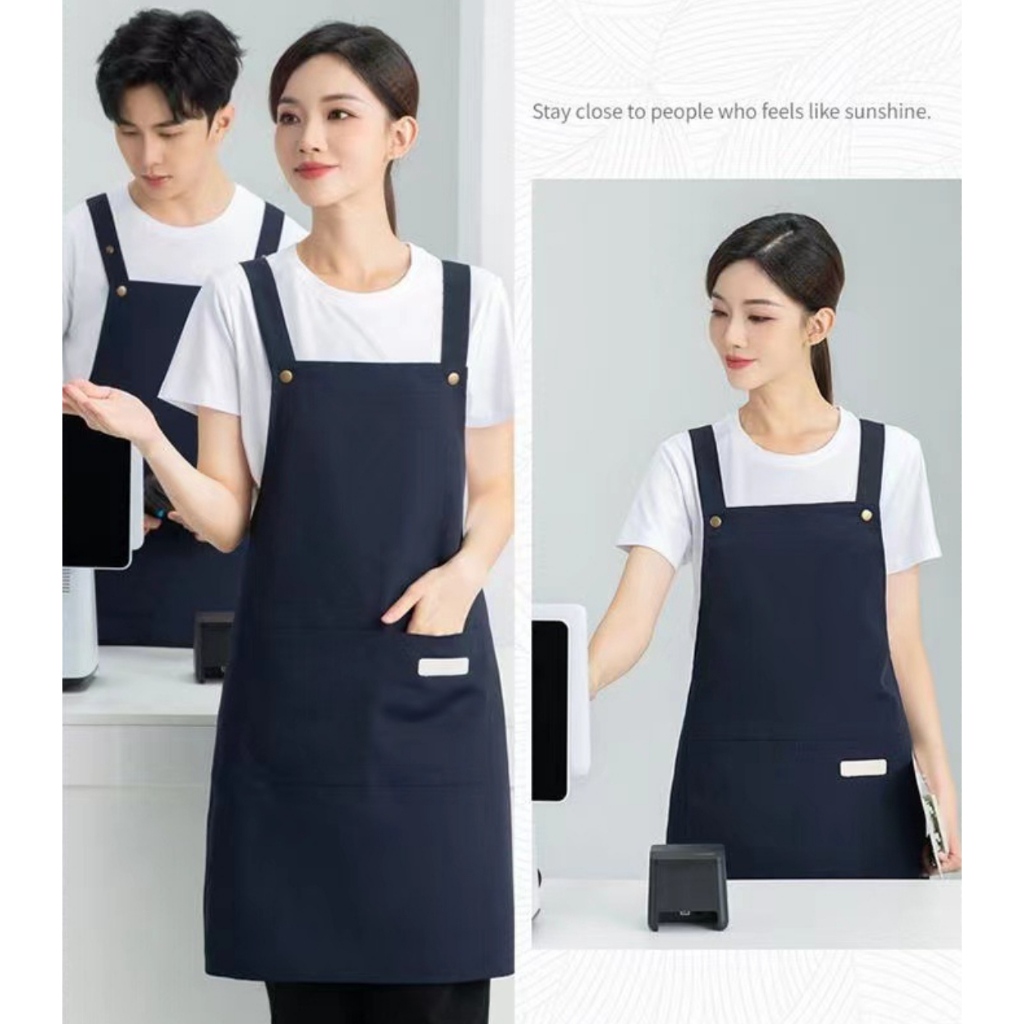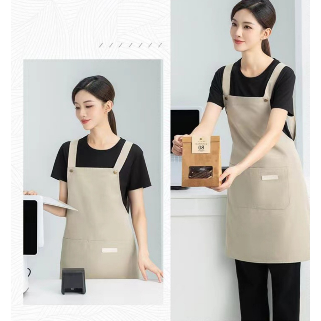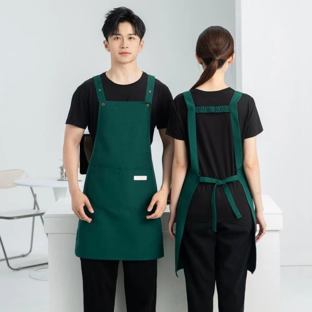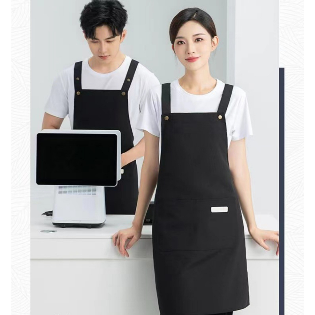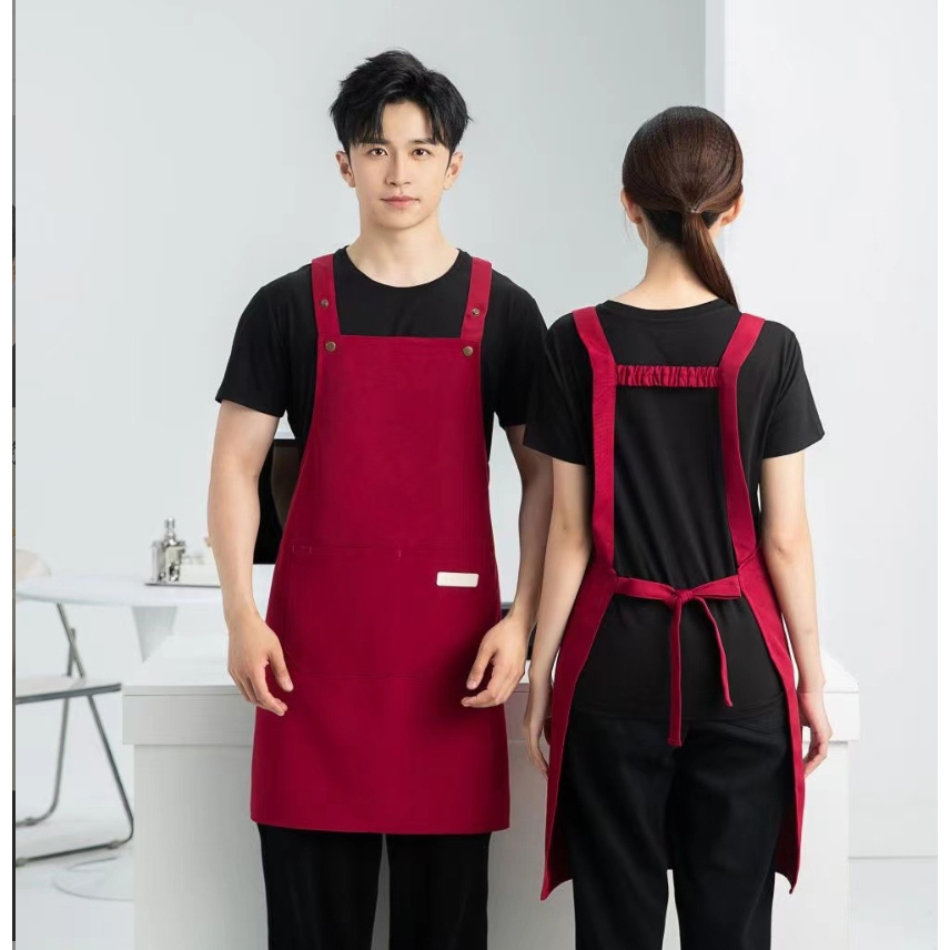Ready Stock Canvas waterproof apron custom logo printing catering baker cafe splash-proof work apron female home kitchen cooking apron male