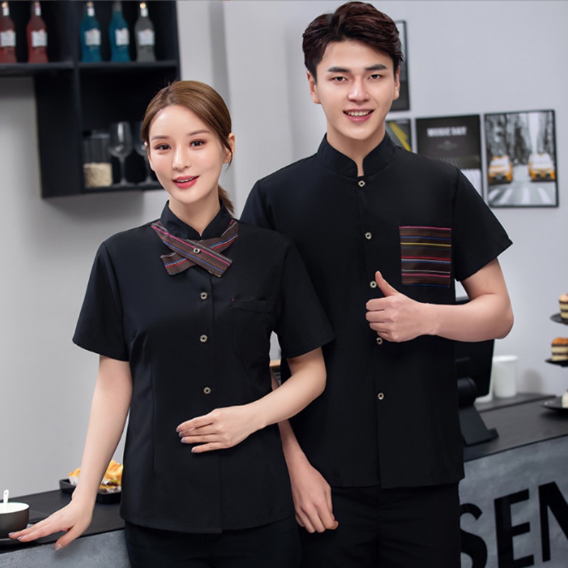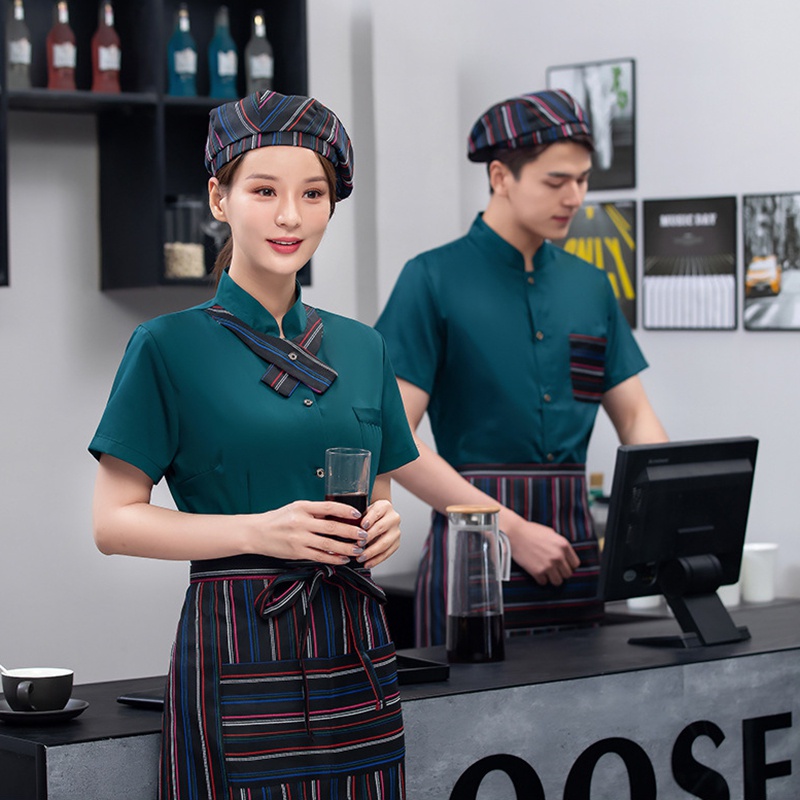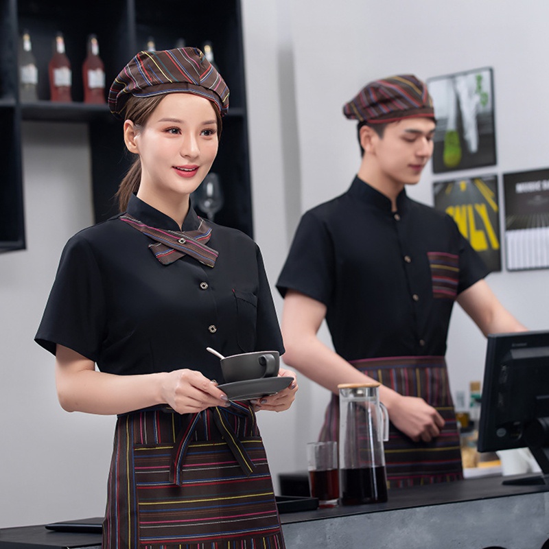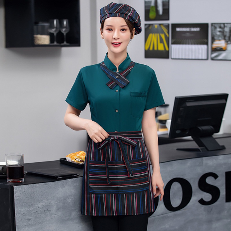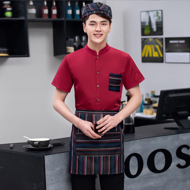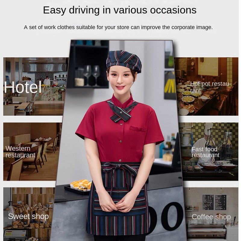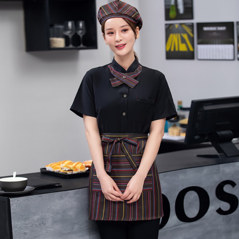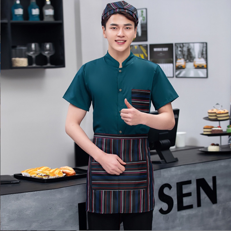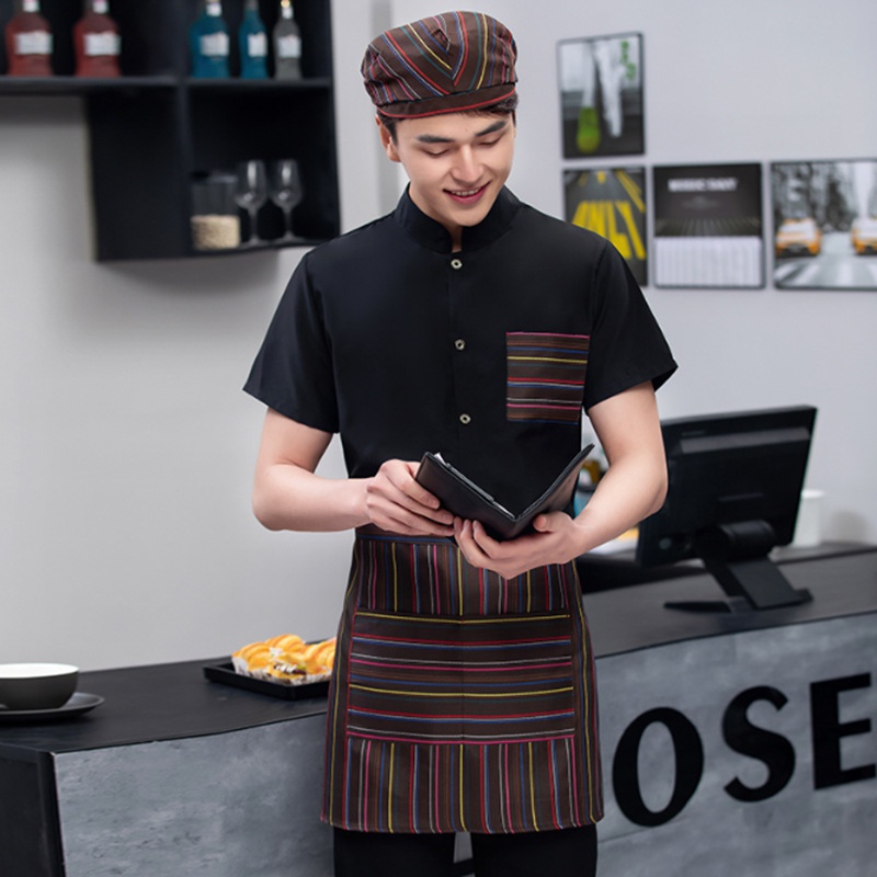 Ready Stock Chef uniform, hat apron three-piece set Western restaurant cafe men's and women's short-sleeved uniform hotel cake bakery bakery waiter work uniform
