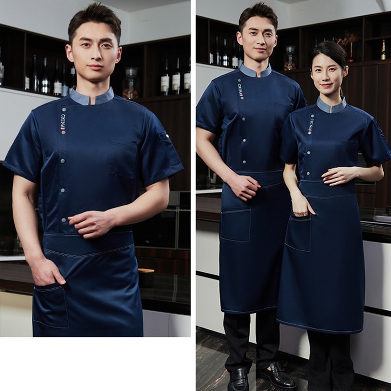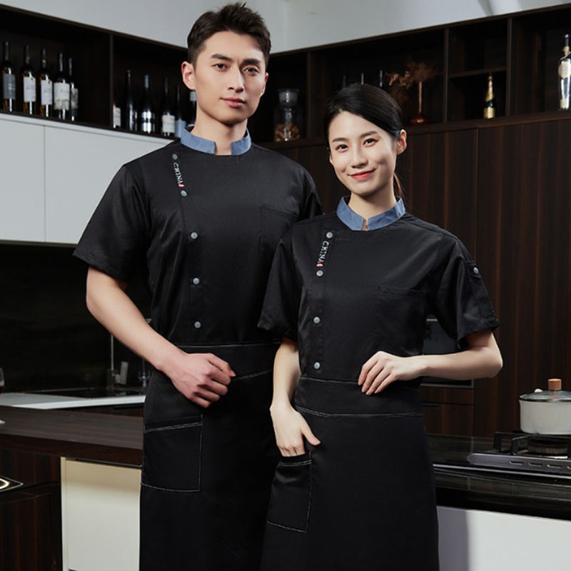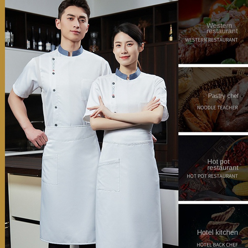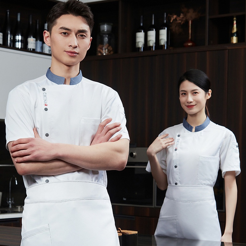 Ready Stock Hotel Restaurant Kitchen Uniform Chef Uniform Short Sleeve Chef Workwear Bakery Cafe Unisex Work Uniform