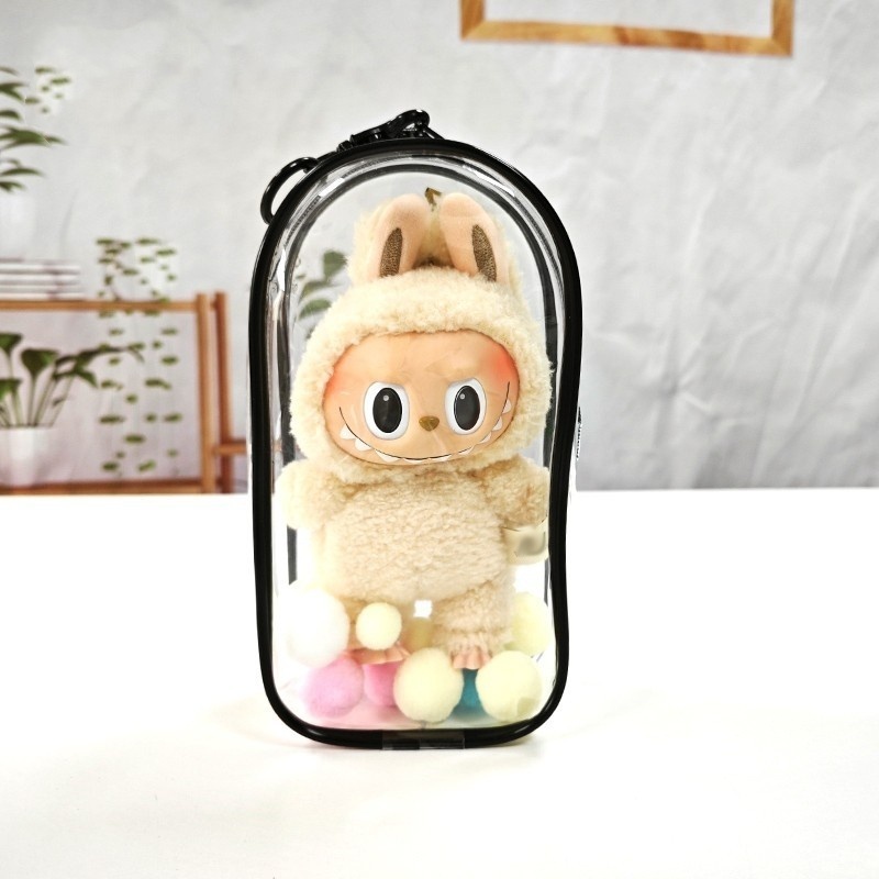 Ready Stock Labubu Bag PVC Transparent Case Cover Anti-dust Dustproof Doll Accessories Box with Keychain and ball for Labubu v1 v2/Liila lucky cat