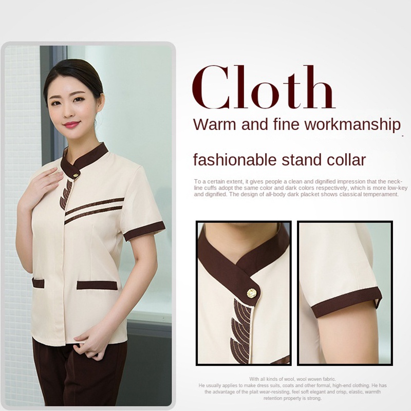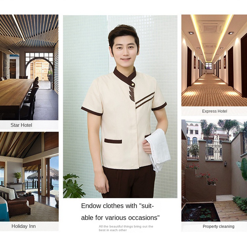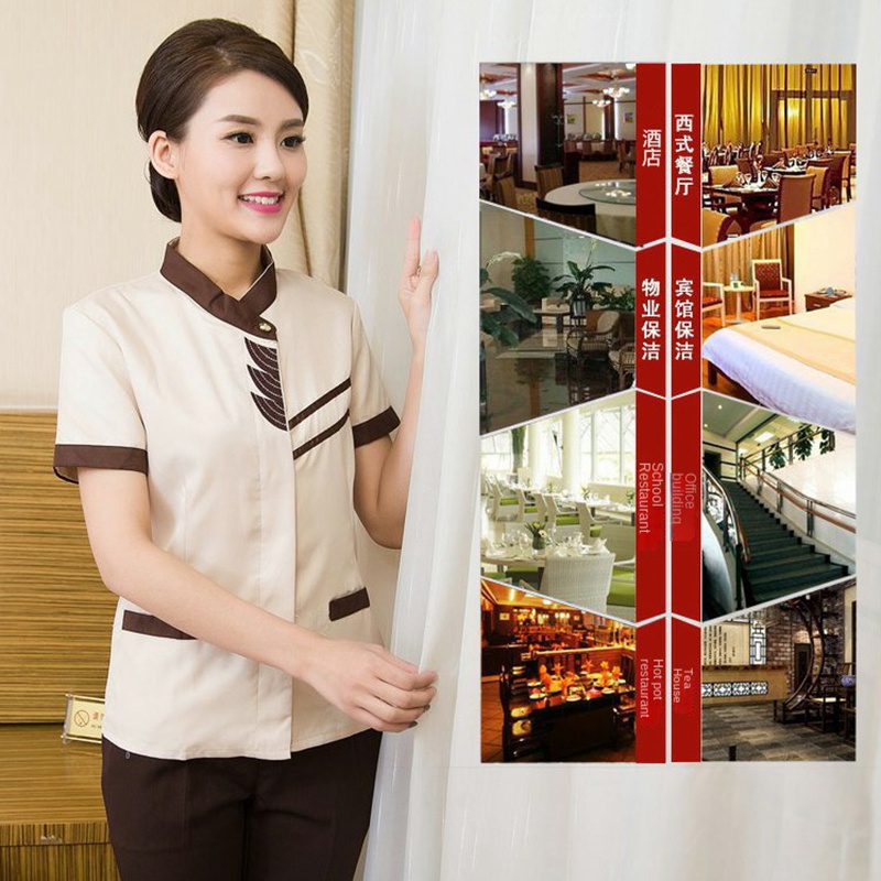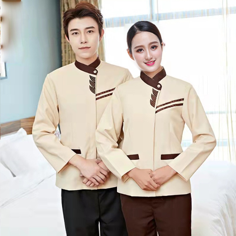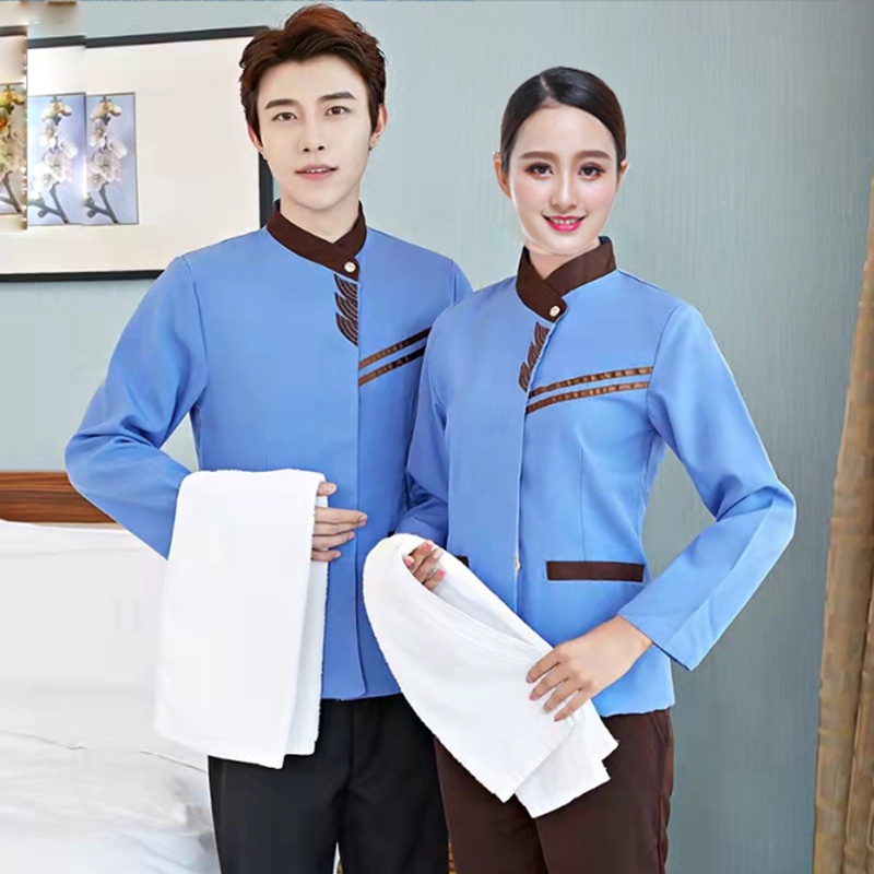 Ready Stock Long-sleeved hotel waiter uniform unisex hotel room attendant cleaning work cotton uniform suit