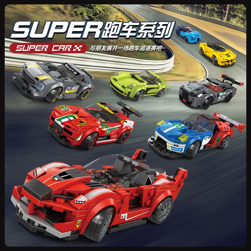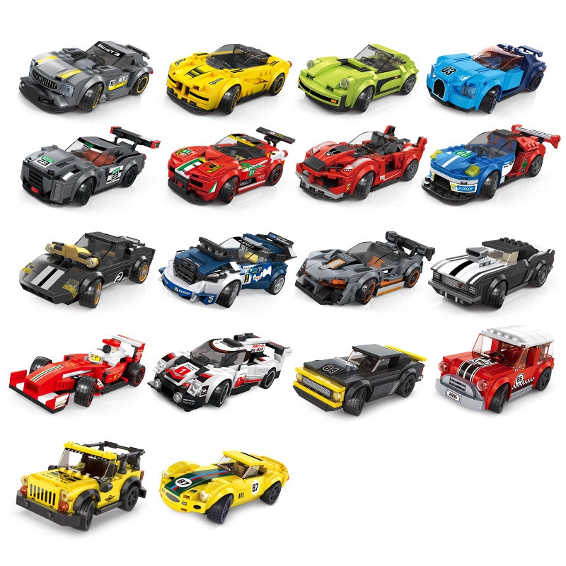 Ready Stock Racing Building Blocks Formula Racing Sports Car Small Building Blocks Car Rally Car Competition Series Small Particles Children Assembling B