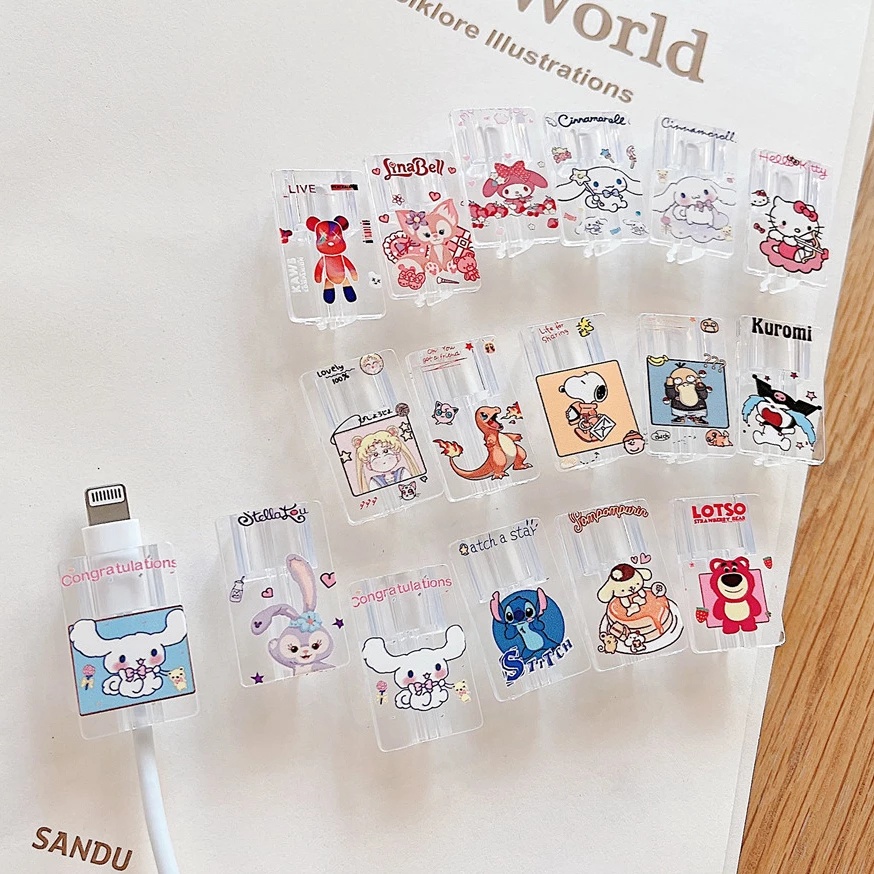 Ready Stock Transparent Cartoon Cute Cable Protector Organizer Wire Winder Data Line Cord Winder