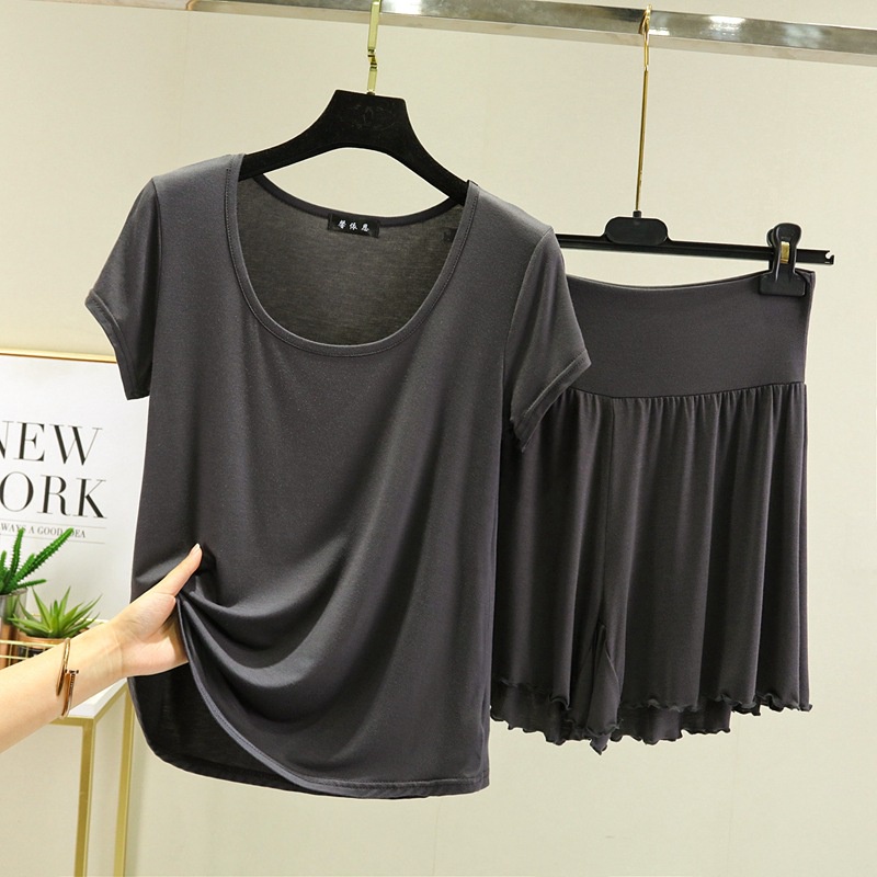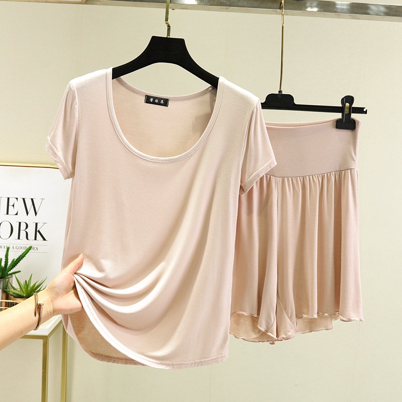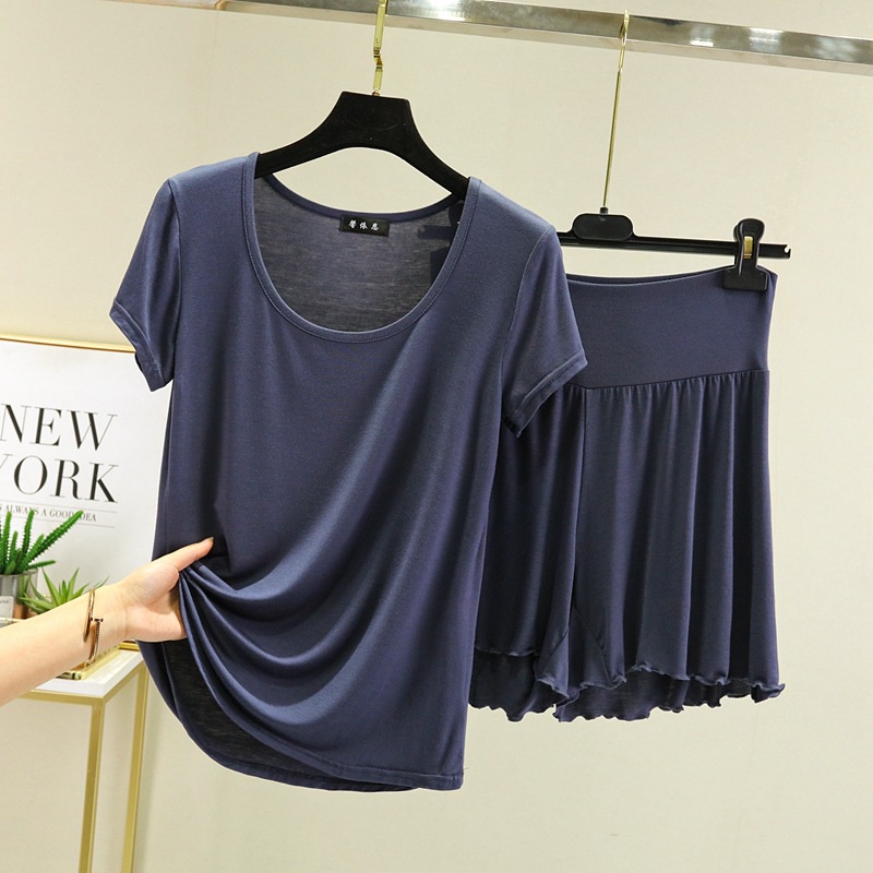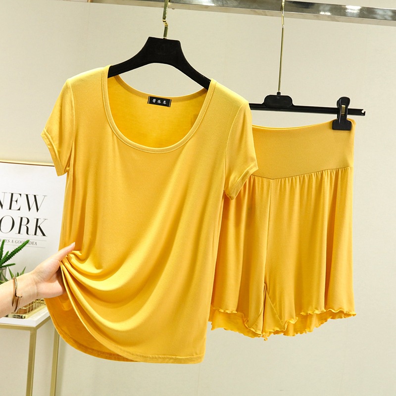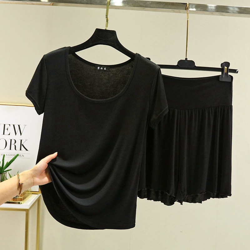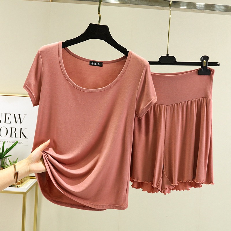Women Modal Cotton Lounge wear set Plain Pajamas Set round neck Short Sleeve t shirt + shorts Sleepwear Suit