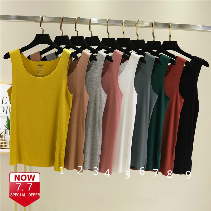 Ready Stock Women Summer tanks top thin pure blouse cotton plain tops seamless suspender ladies tshirt