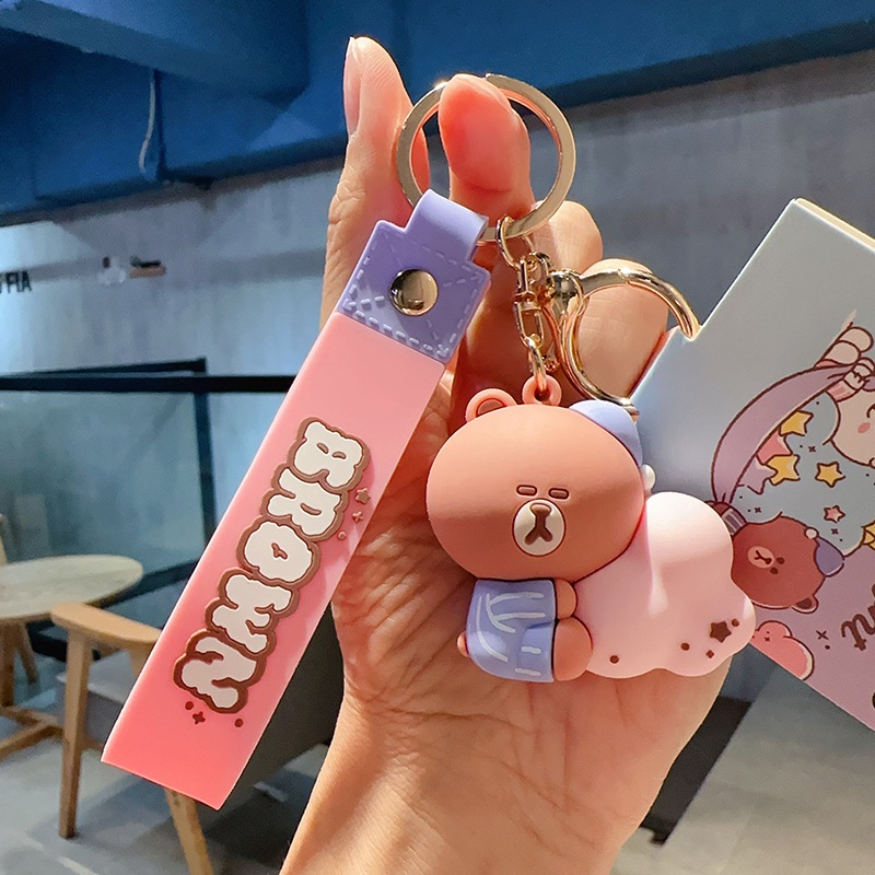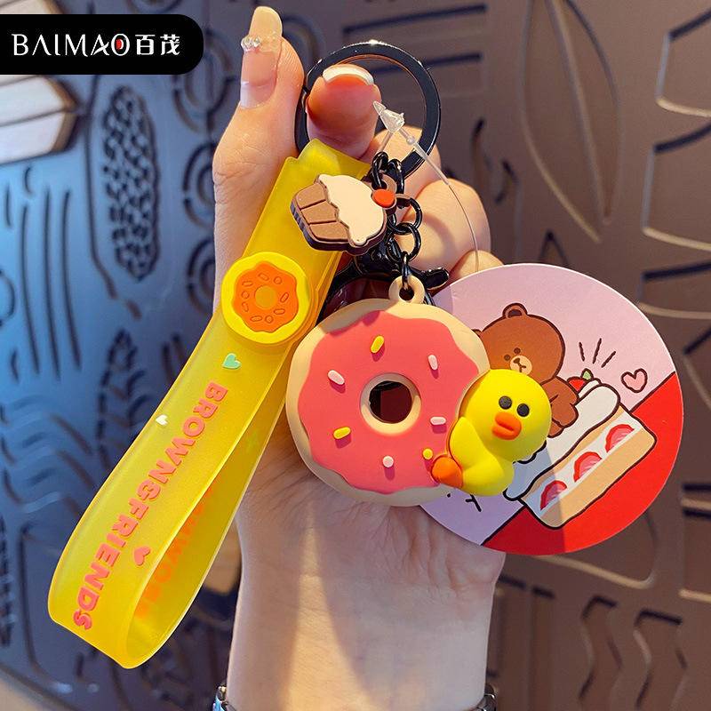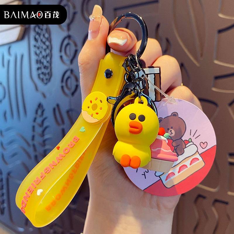 Ready Stock line friends Cake Series Keychain Brown Bear Chuconi Rabbit Sally Chicken Key Ring Pendant Pendant Small Gift Exchange Gift