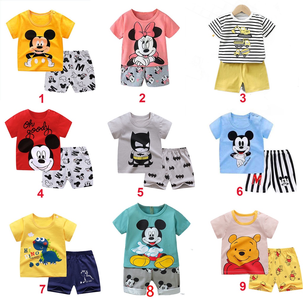 Ready Stock summer terno baby boy clothes set kids clothes Cartoon baby boys clothes 2pcs for 1-2-3T clothes for kids