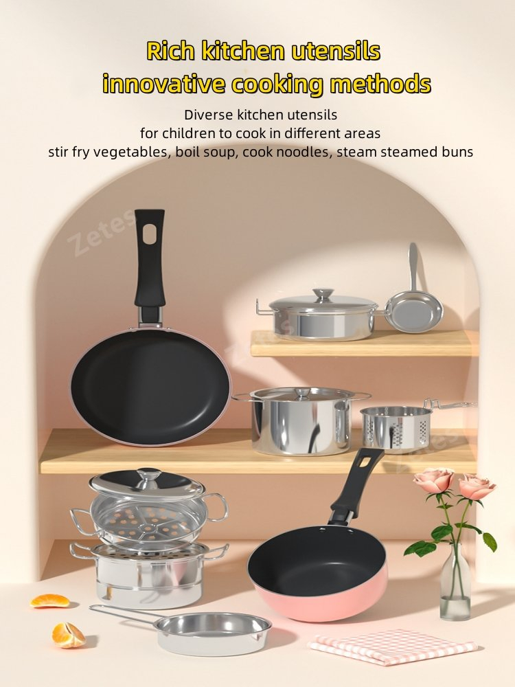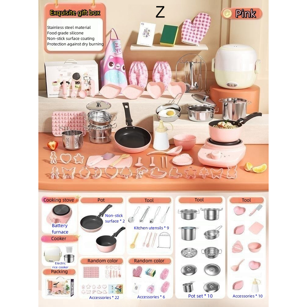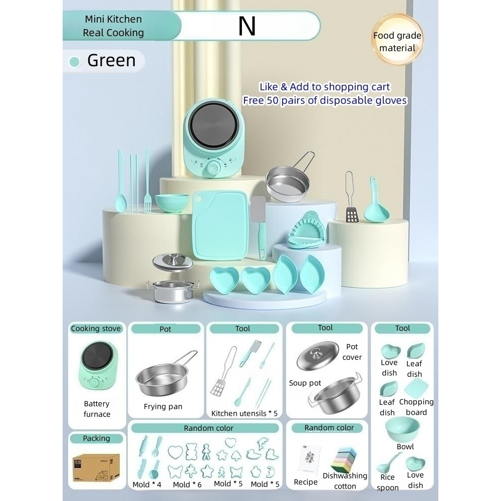 Real Mini Cooking Set for Kids Kitchen Set Toys Stainless Steel Food Grade Material Battery Furnace
