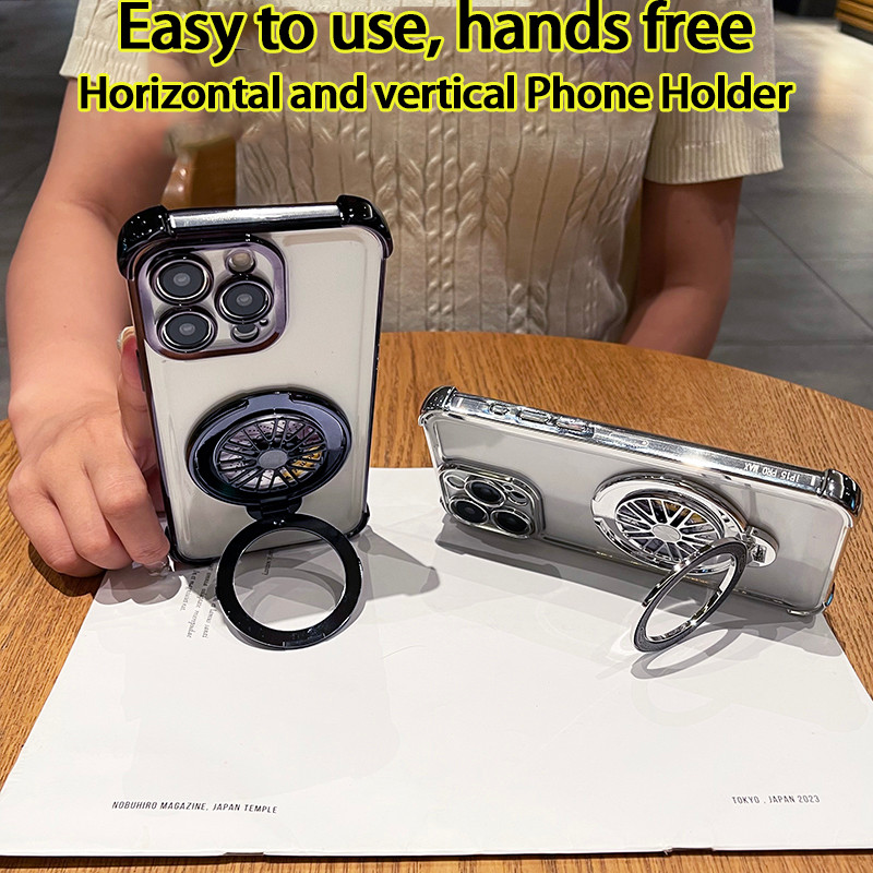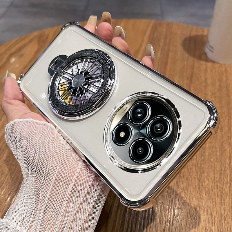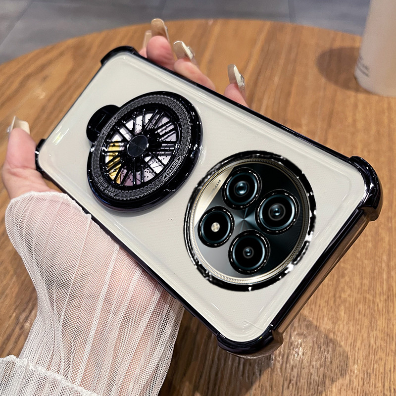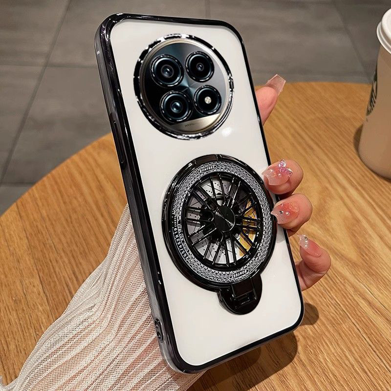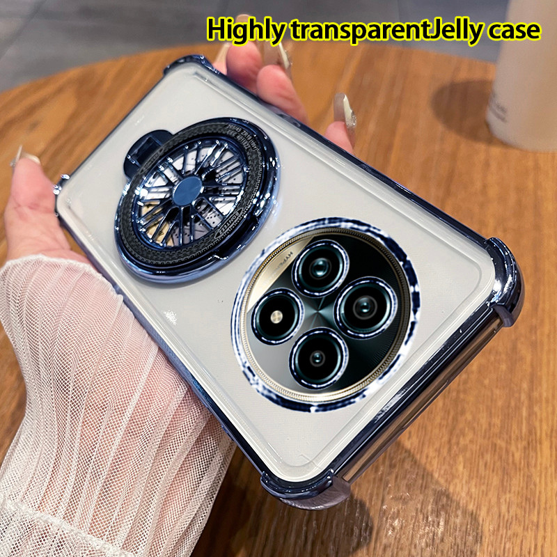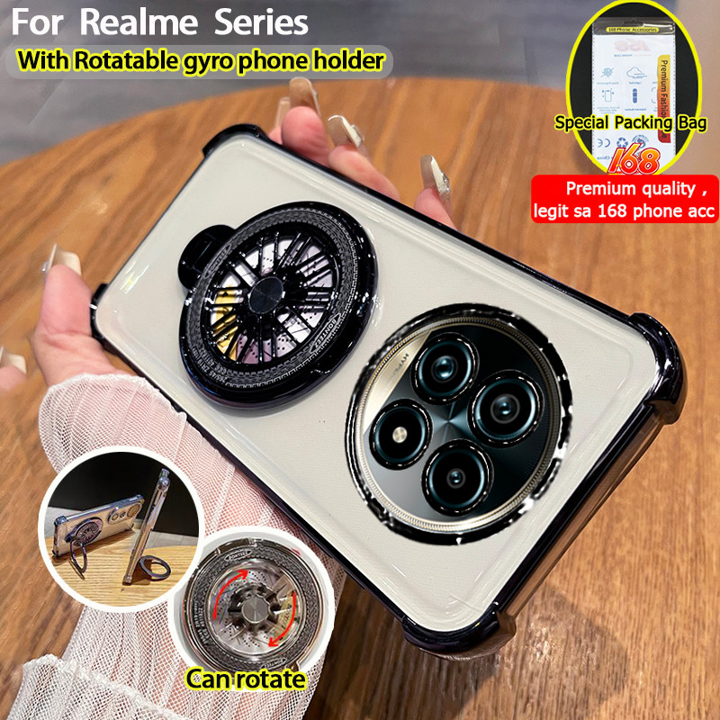 Realme 14 13 Pro Plus 5G Case Realme 13 Plus 12 12X 13+ 14 15 Pro 5G Case Clear Shockproof Case with Camera Cover Stressrelief Gyro Rotatable Phone Holder Stand Thickened Airbag Soft Phone Cover