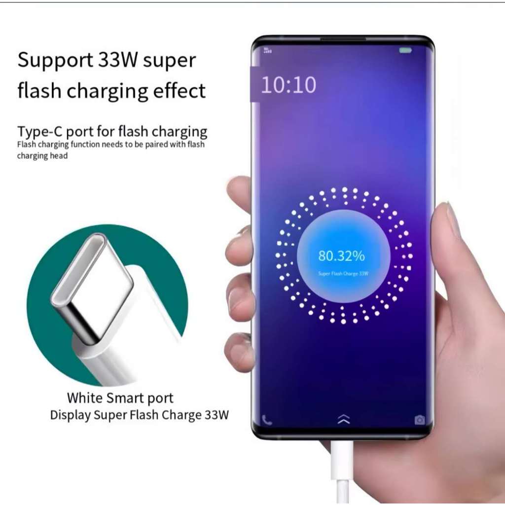 Realme 33W Super Vooc Fast Charger USB Power Adapter 6A Type-C Charger Cable