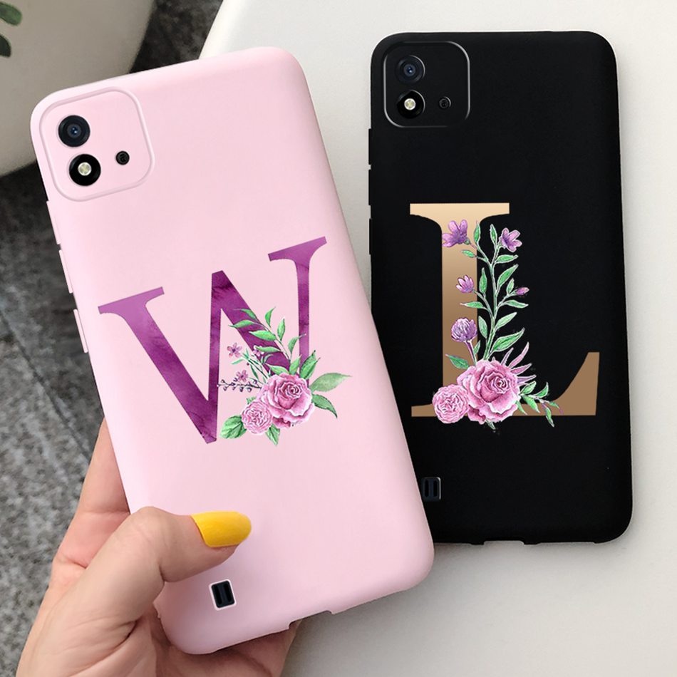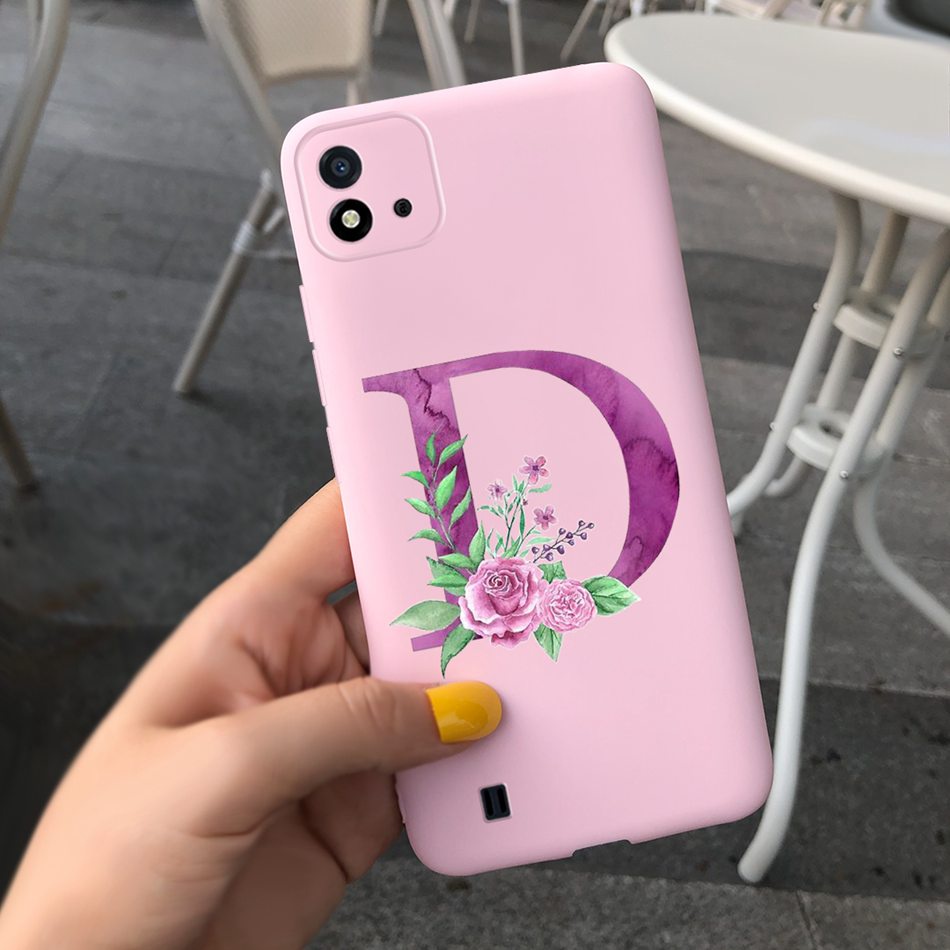 Realme C11 2021 RMX3231 Phone Case Cute Letter Flower Candy Color Soft Silicone TPU Phone Case