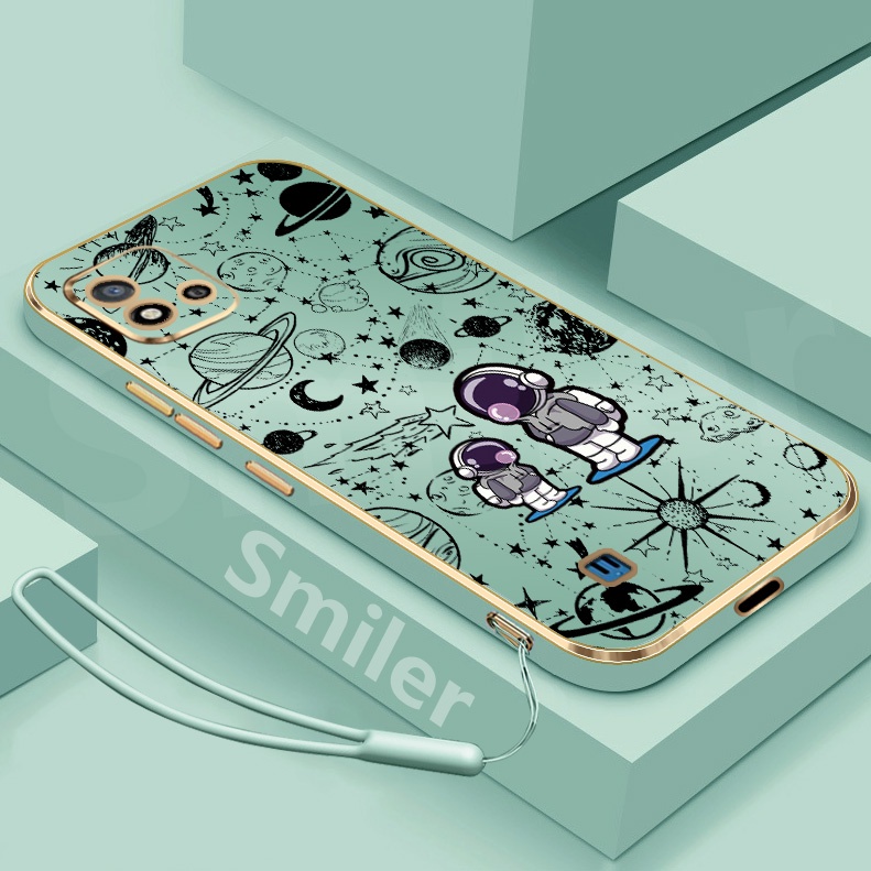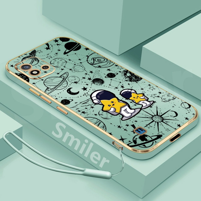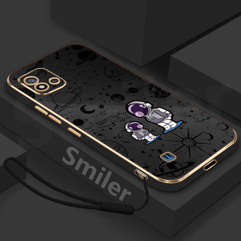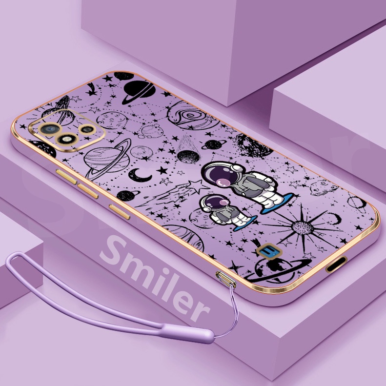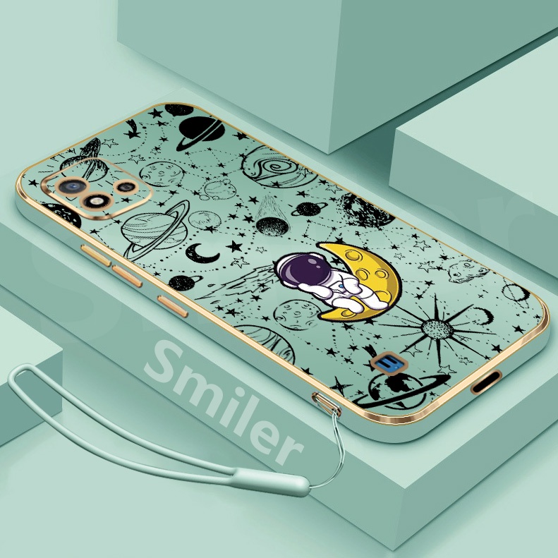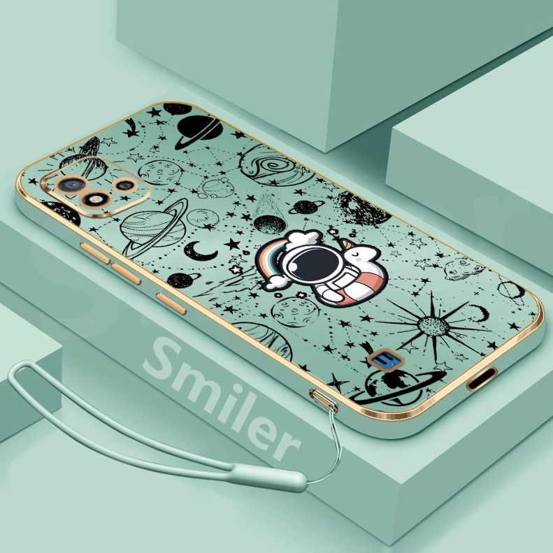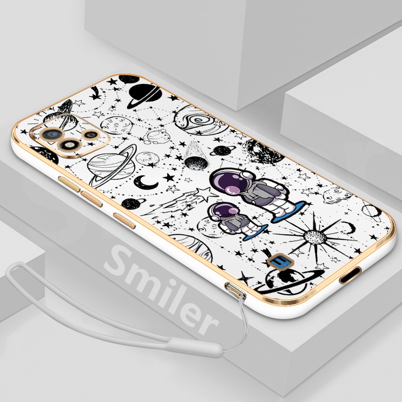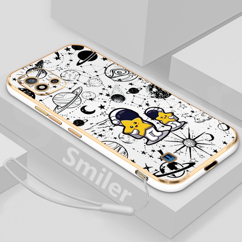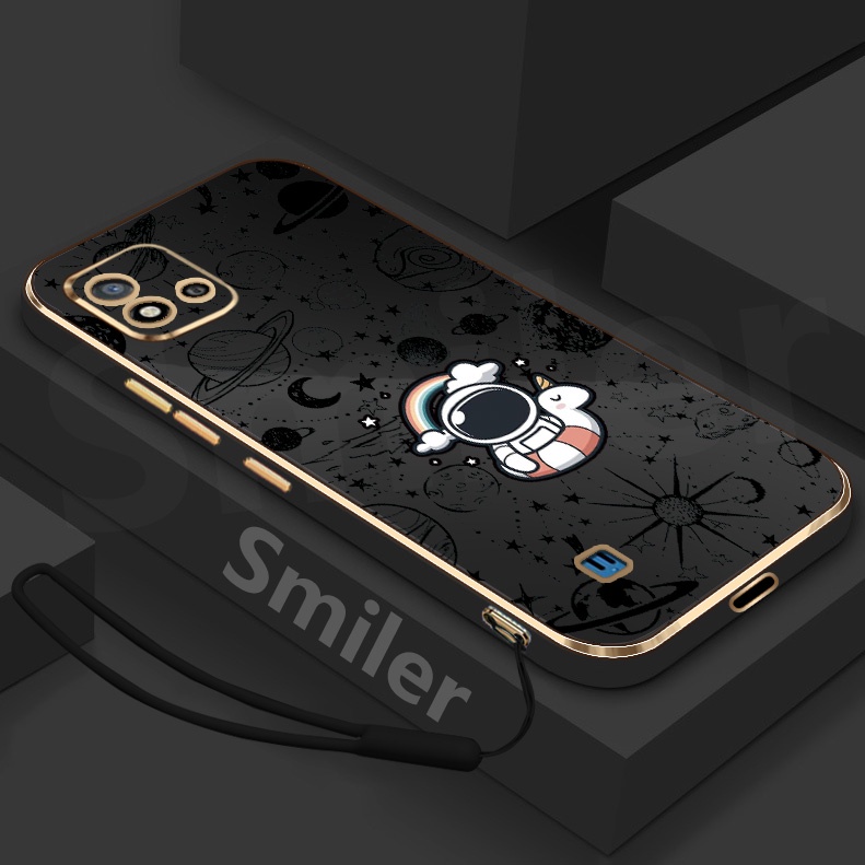 Realme C20 C20A C11 2021 Golden Electroplated Lanyard Phone Case Silicone Soft Printed NASA Case