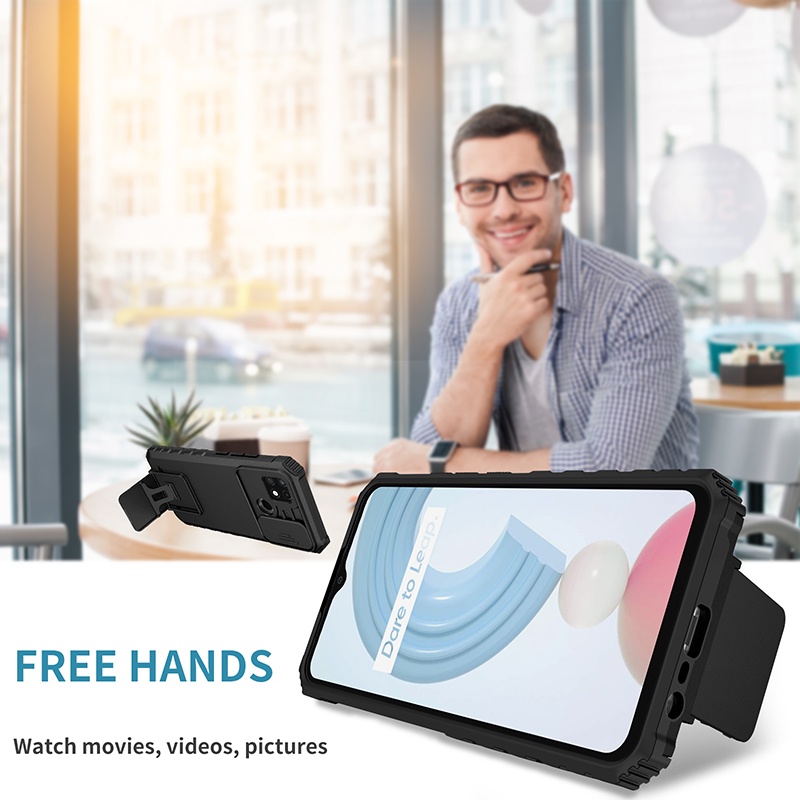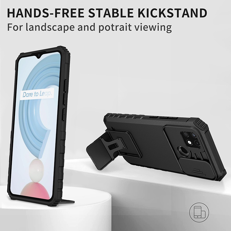Realme C21 C25Y C21Y C35 C31 C25 C25s C15 C12 C20 C11 2021 Shockproof Case Push Pull Camera Protection Stand Cover