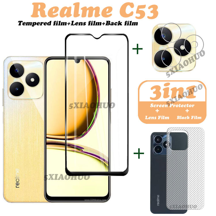 Realme C53 Tempered Glass Realme C53 Screen Protector Realme C55 Camera Lens Protector Full Cover Screen Matte Privacy Glass 3In1 Carbon fiber back film