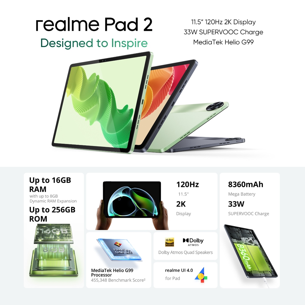 Realme Pad 2 | 6GB+128GB/8GB+256GB | 11.5” 120Hz 2K Super Display | Helio G99 | 8MP AI Camera | 8360