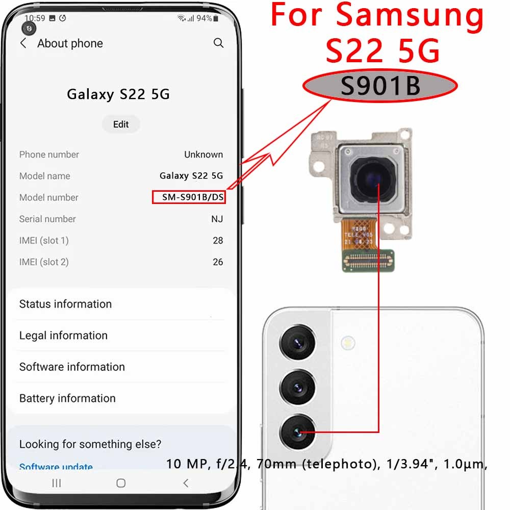 Rear Camera For Samsung Galaxy S22 Ultra S22+ 5G S901B S906B S908 Back Camera Module