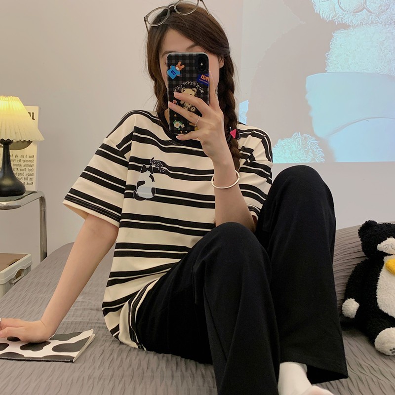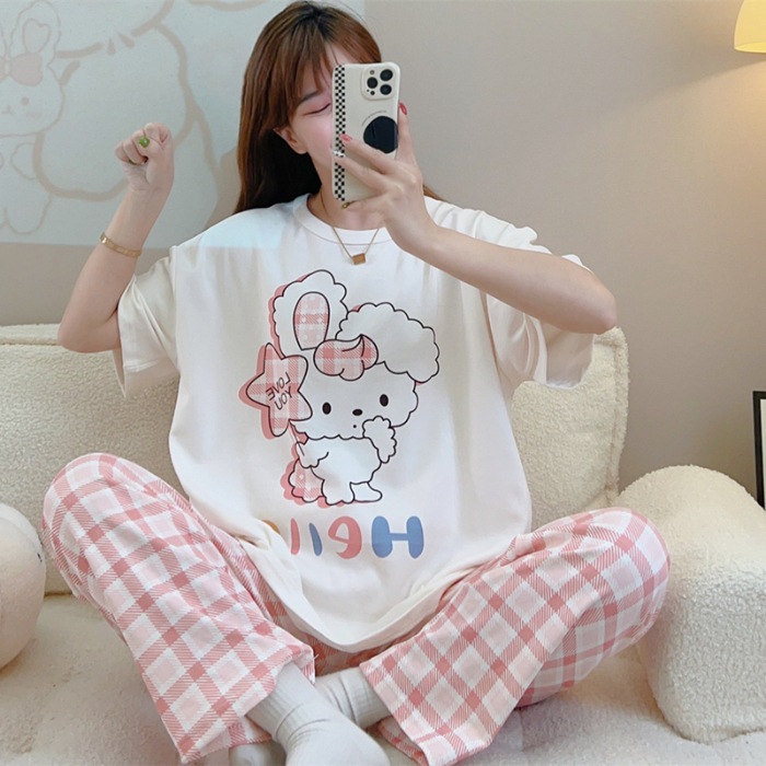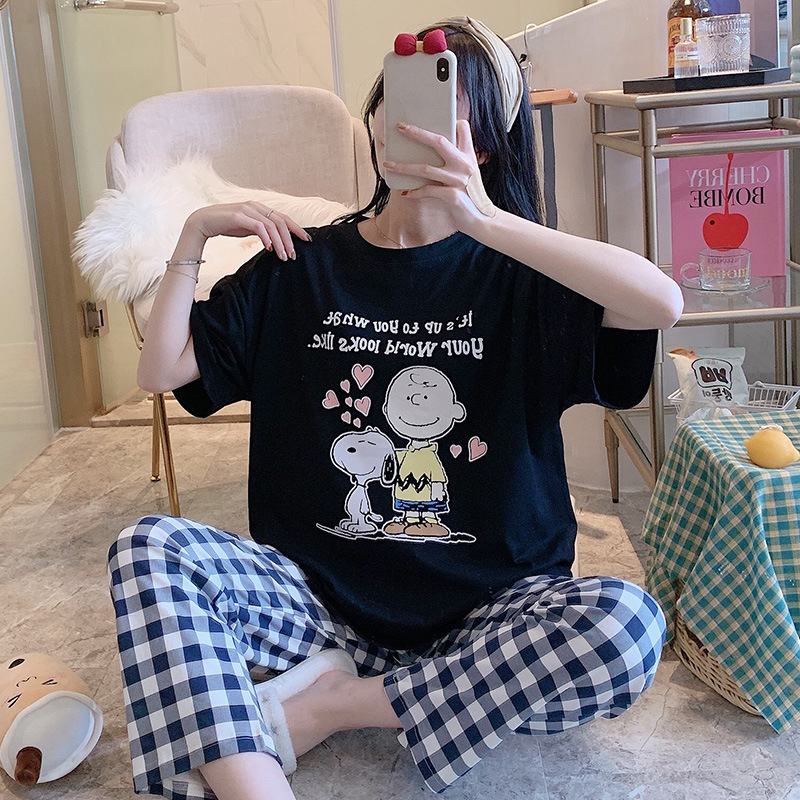 RT Korean Design Cotton Shirt Checker Pajamas Long Pants Nightwear/SleepWear Pajamas Terno Set
