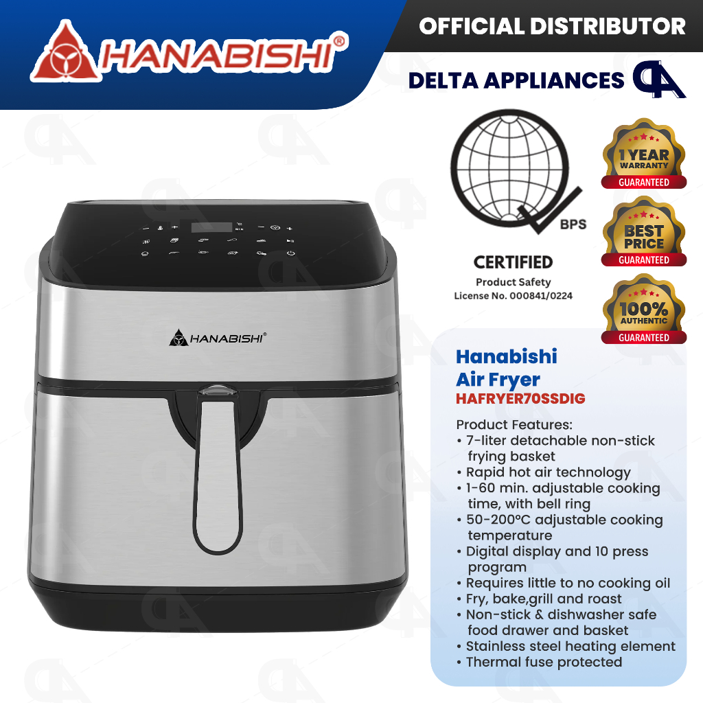 Hanabishi Air Fryer 7.0L Digital Non Stick Basket Original w/ 1 Year Warranty HAFRYER 70SSDIG