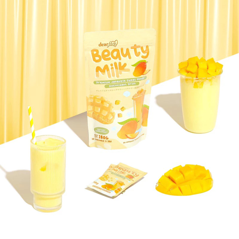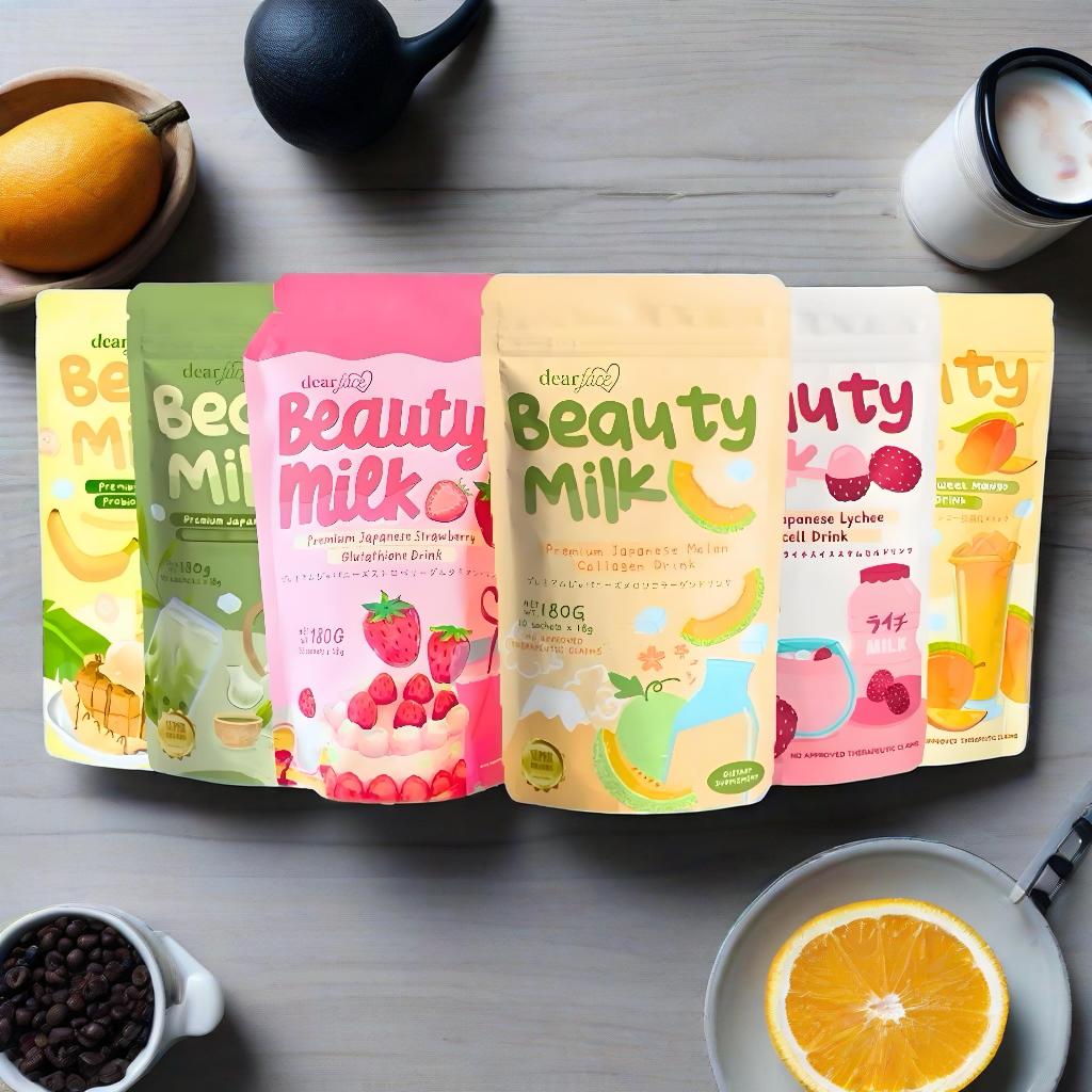 Dear Face Beauty Milk Matcha, Melon, Ichigo, Lychee,Banana Flavor Collagen Drink Beauty Bean