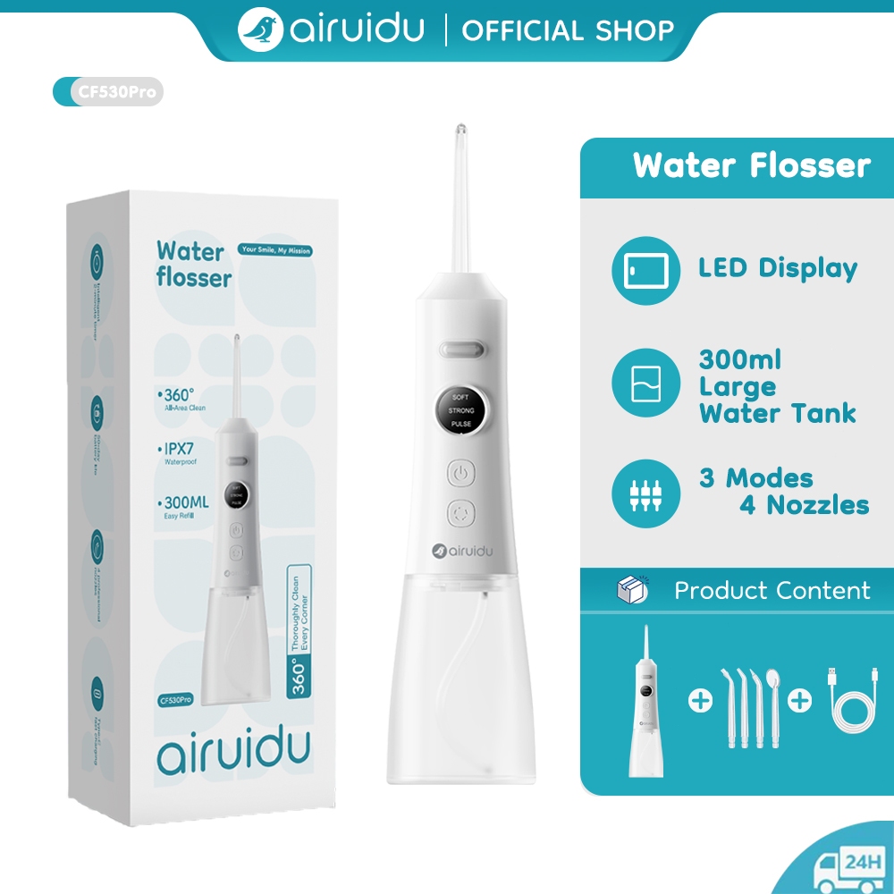 Airuidu CF530Pro Water Flosser 300ml Large Water Tank 360°Rotating Nozzle Three-modes LED Display
