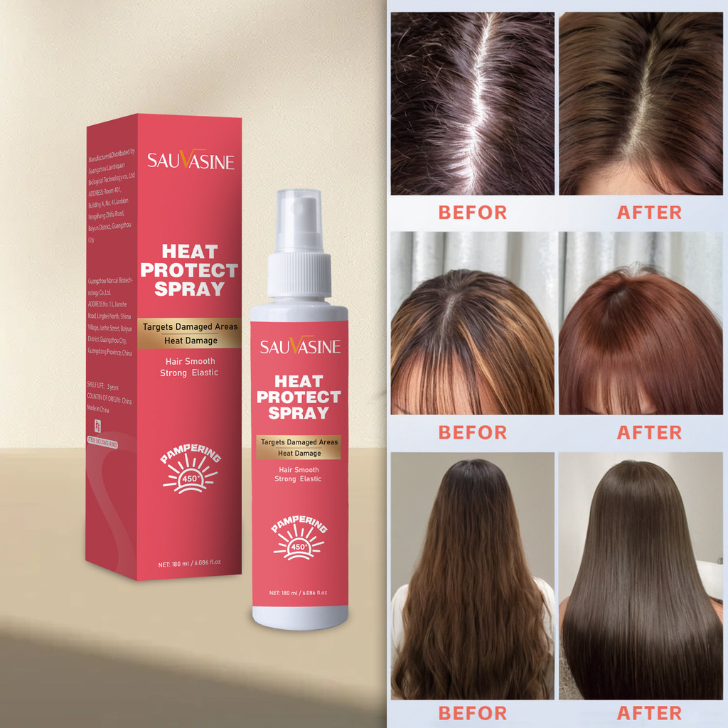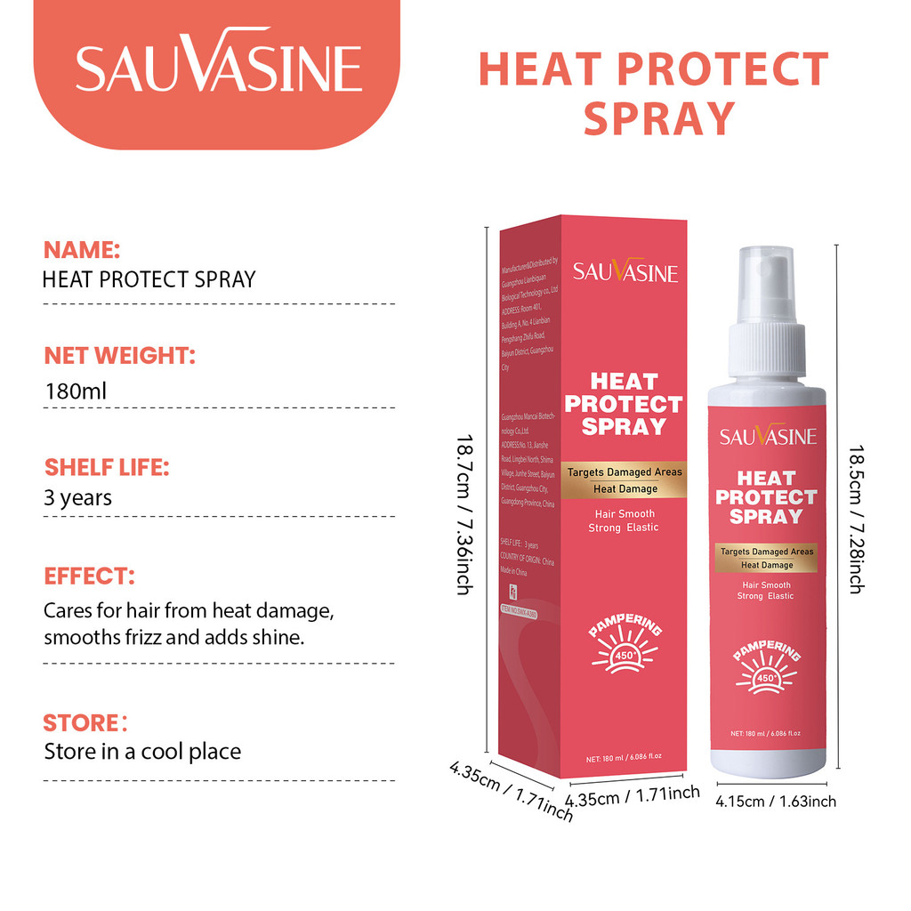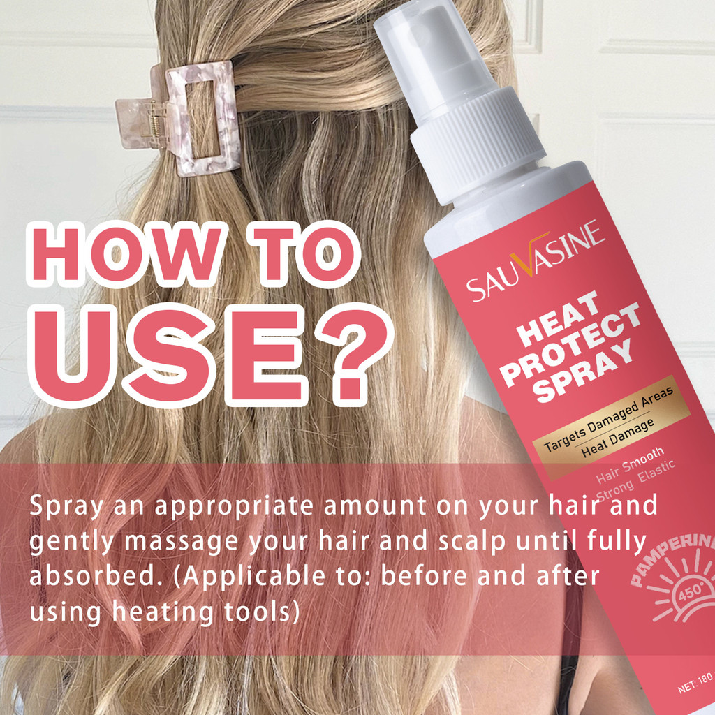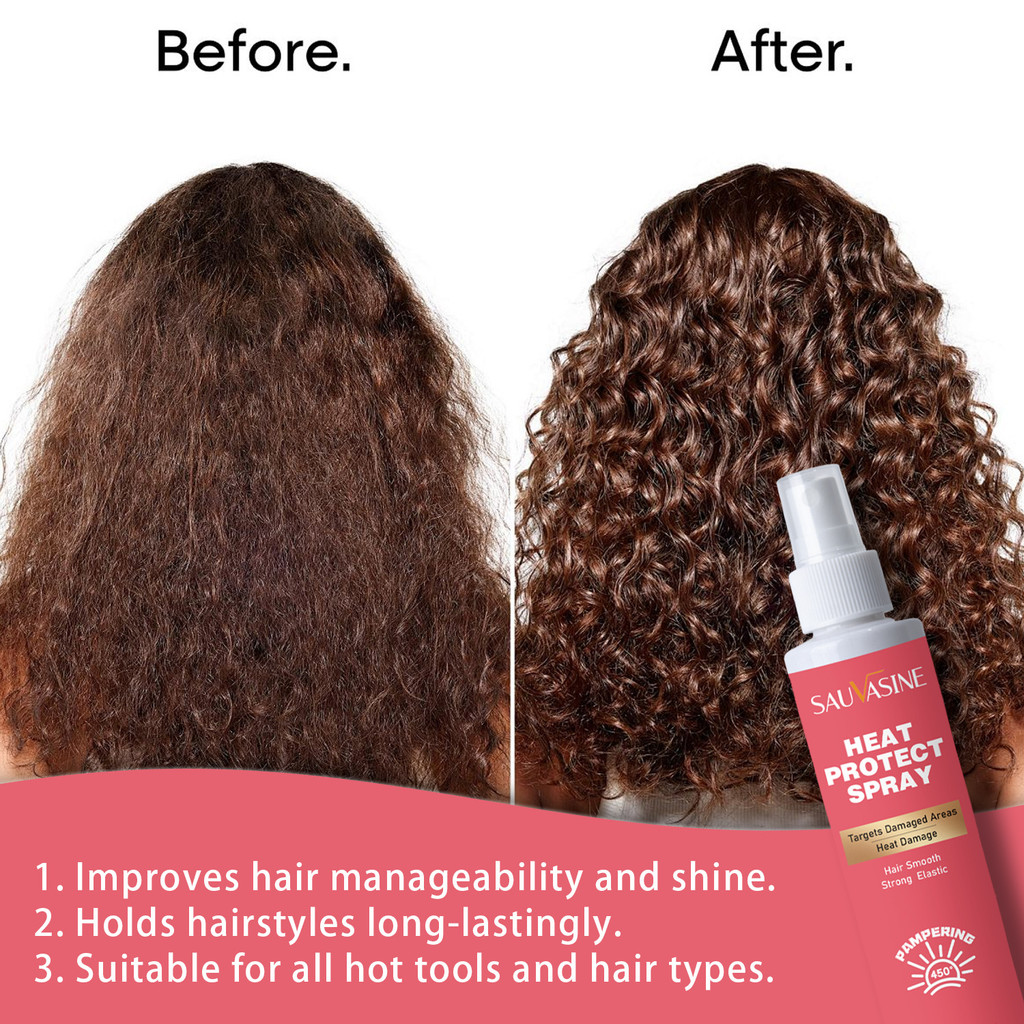 Heat Protect Spray 450°F Thermal Protection for Frizzy Damaged Hair Anti-Frizz Shine Styling Spray SAUVASINE