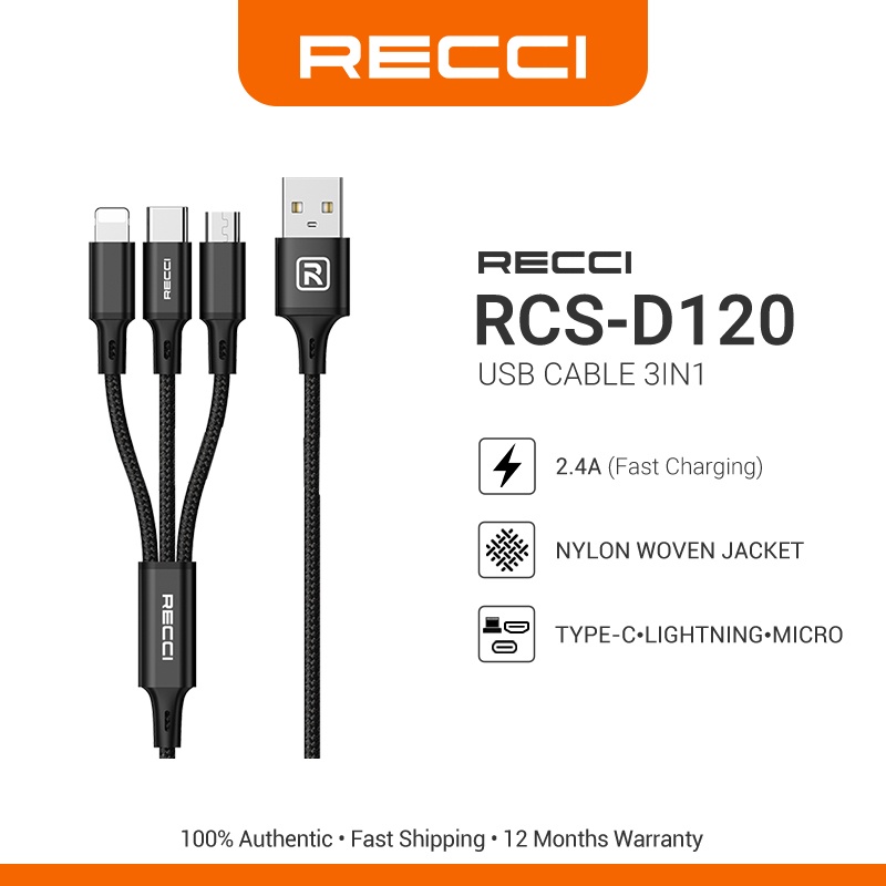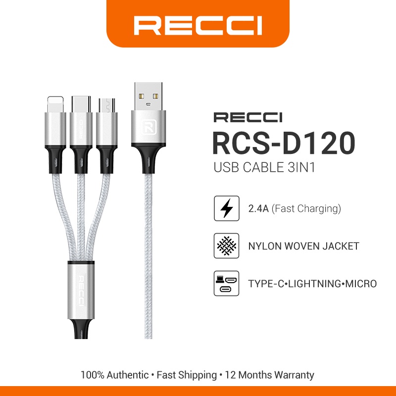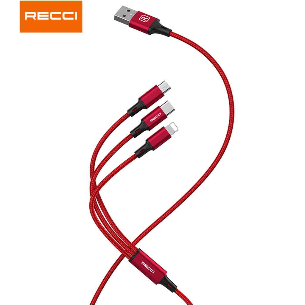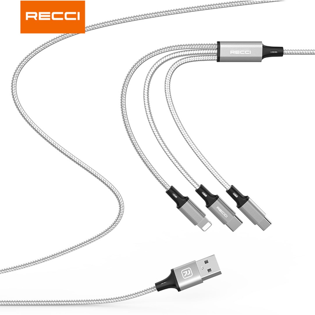 Recci RCS-D120 3-in-1 USB Cable Lightning/ Type-C/ Micro 2.4A Fast Charging Smart Chip