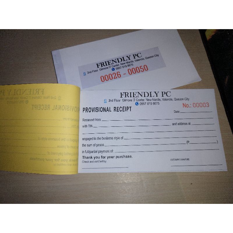 Receipt (non-BIR, non-carbonized) with SERIES No. (CUSTOMIZED) *(3 BOOKLETS MINIMUM)