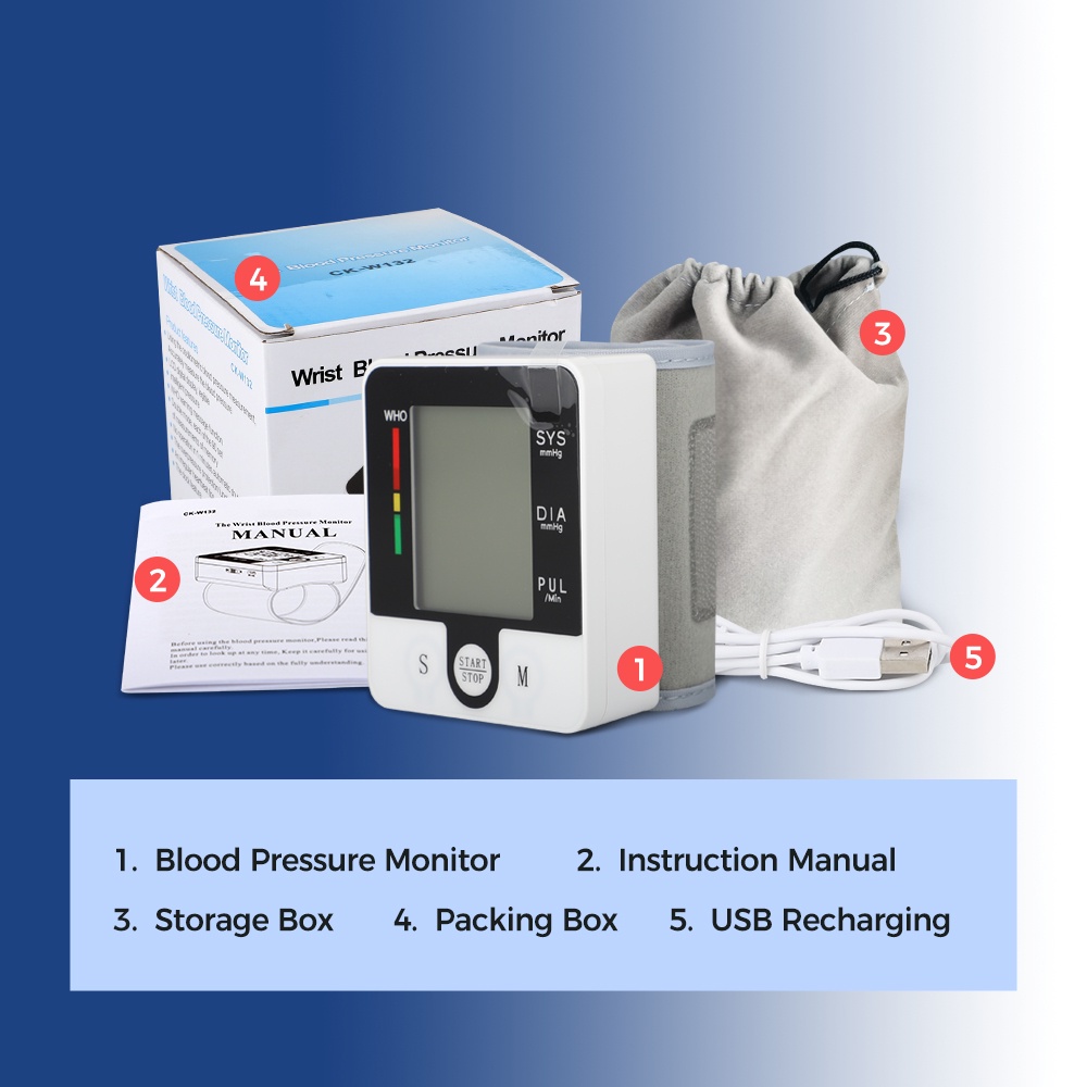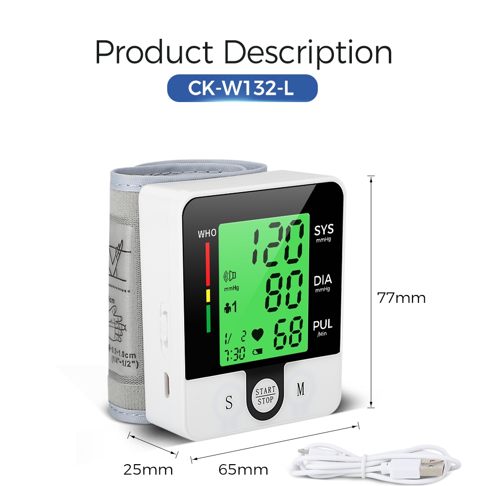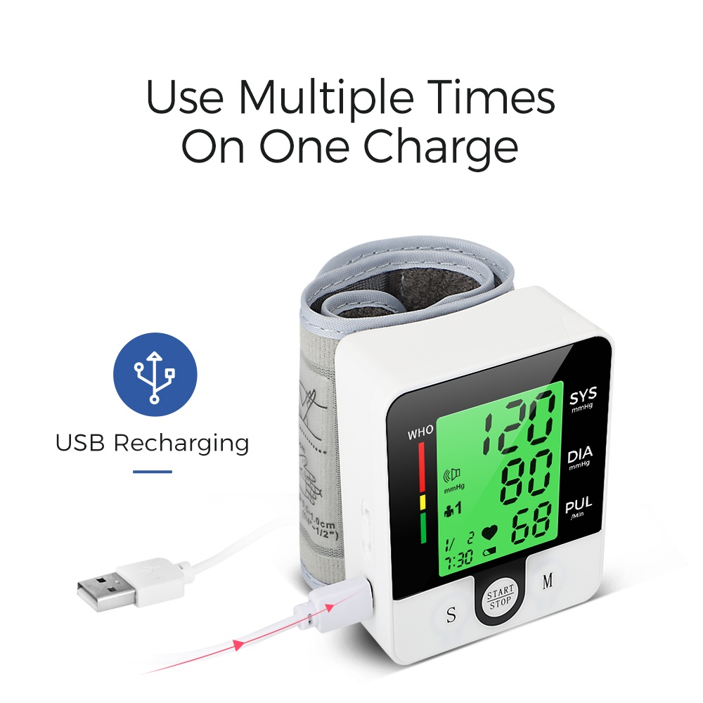 Rechargeable Blood Pressure Monitor Digital Sphygmomanometer Hypertension Monitor With USB Charging Cable
