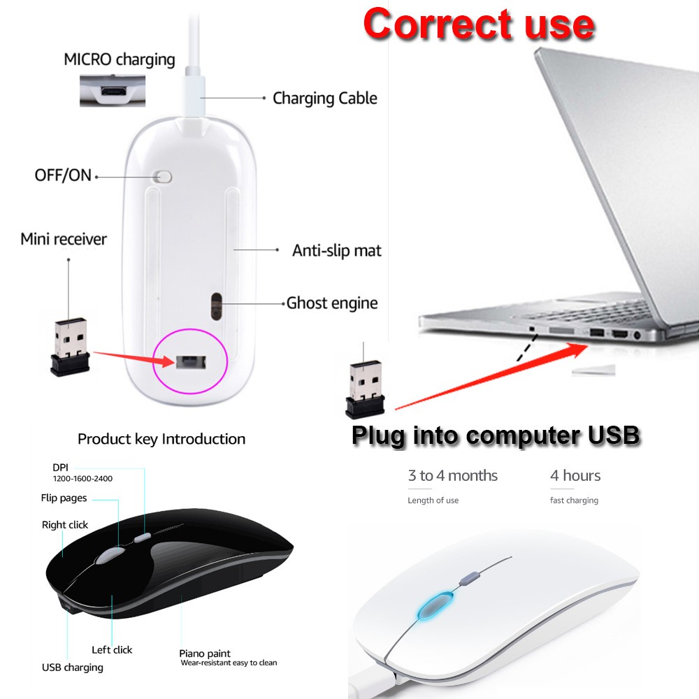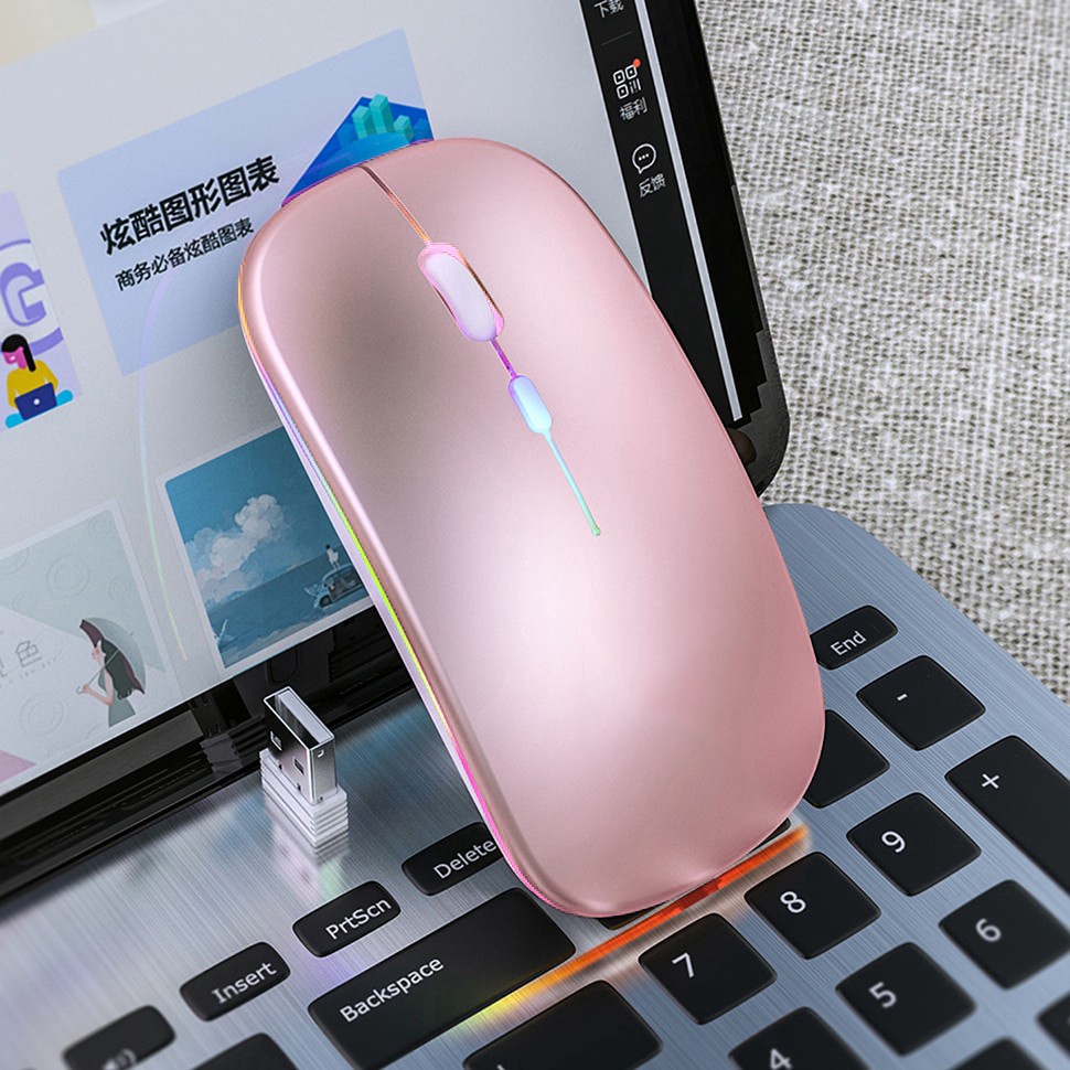 Rechargeable Bluetooth Silent Thin Mouse 2.4G Wireless Mouse + USB Reciever WITH LED Backlight