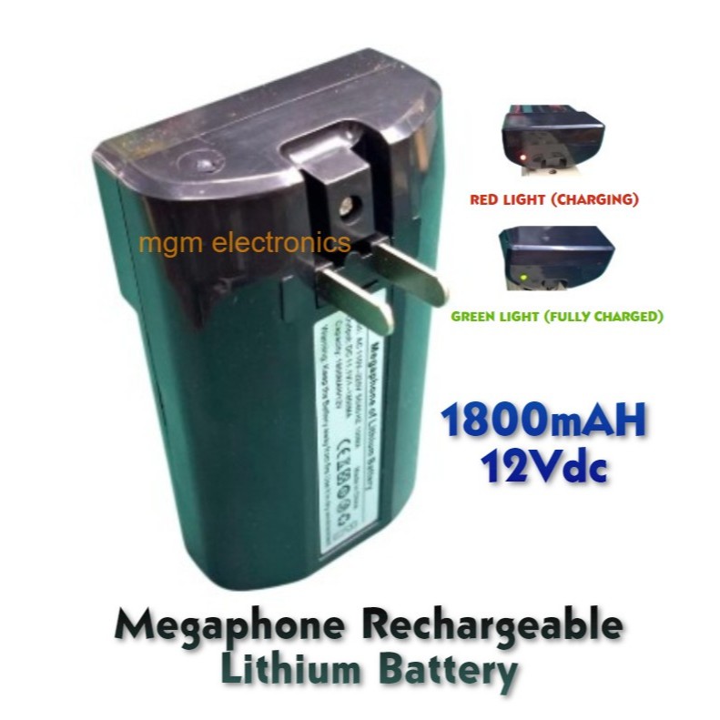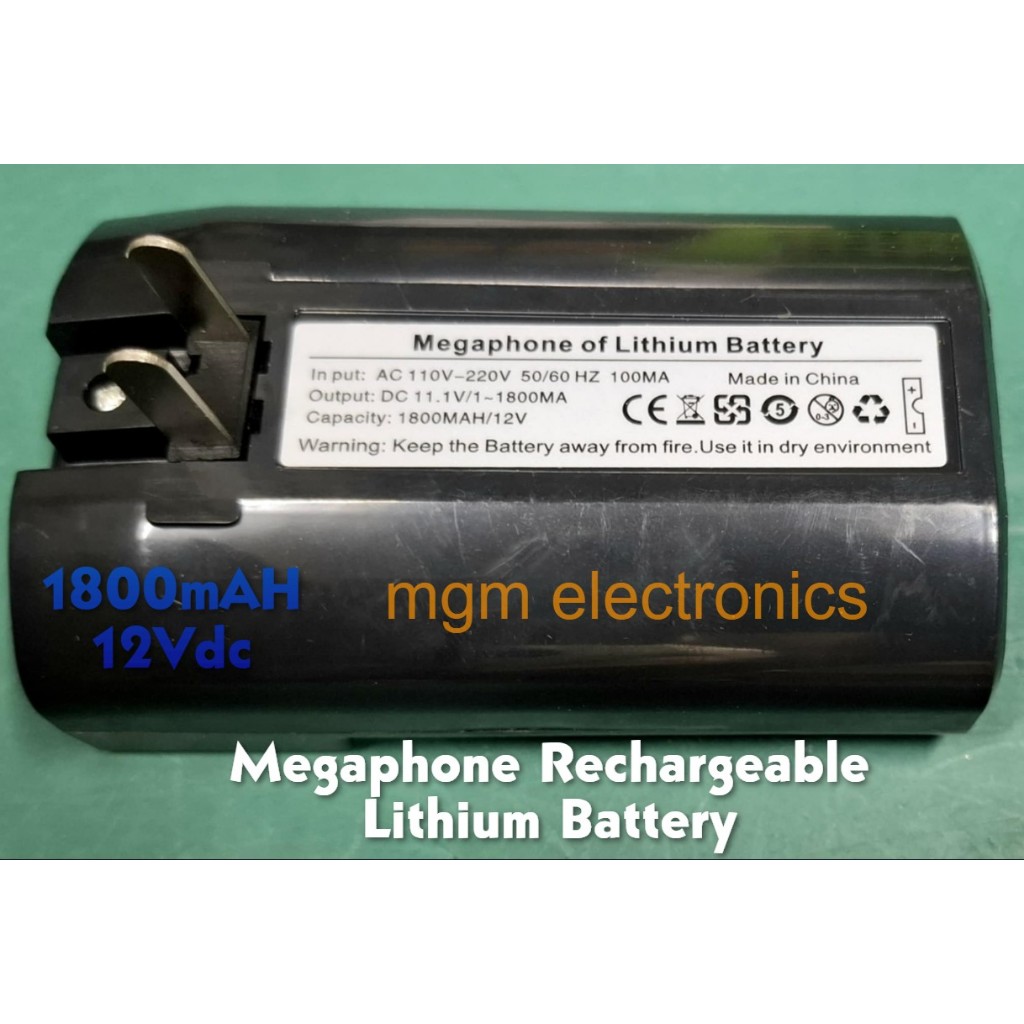 Rechargeable Lithium Battery Pack for Megaphone, 1800mAH 12VDC with BUILT-IN Wall Charger.