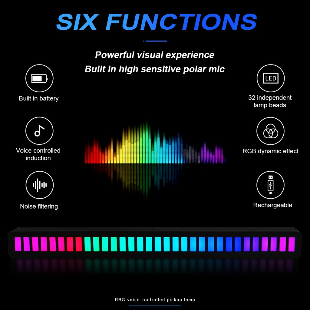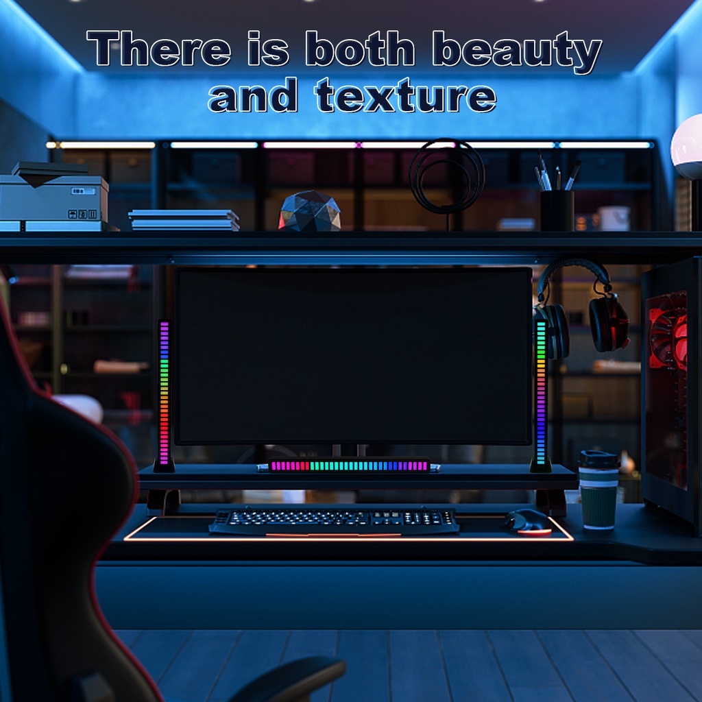Rechargeable Music Sync Led Strip Lights Sound Control Pickup Rhythm Lamp Atmosphere Light Voice-Activated Atmosphere Rgb Light Bar for Car Party 1PCS
