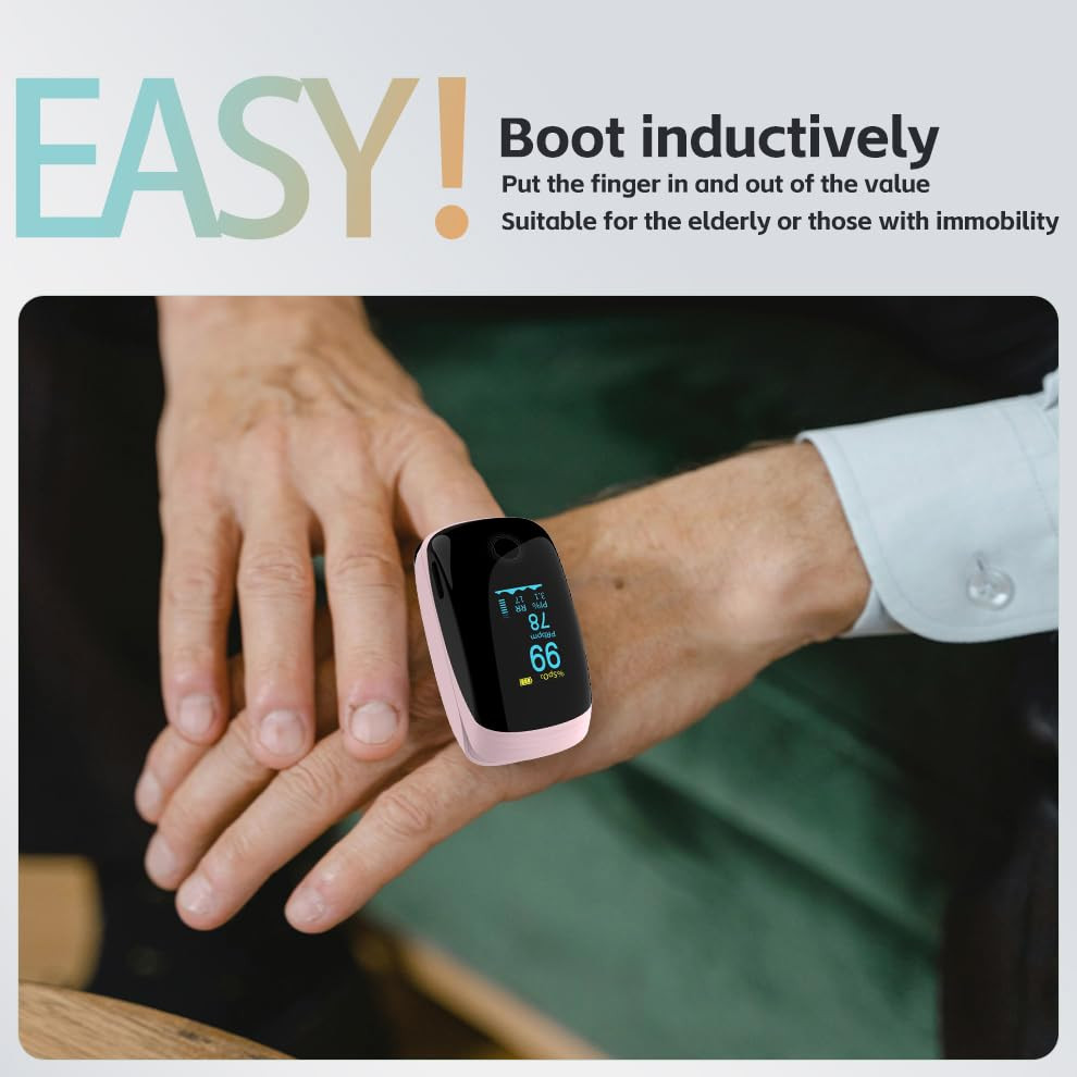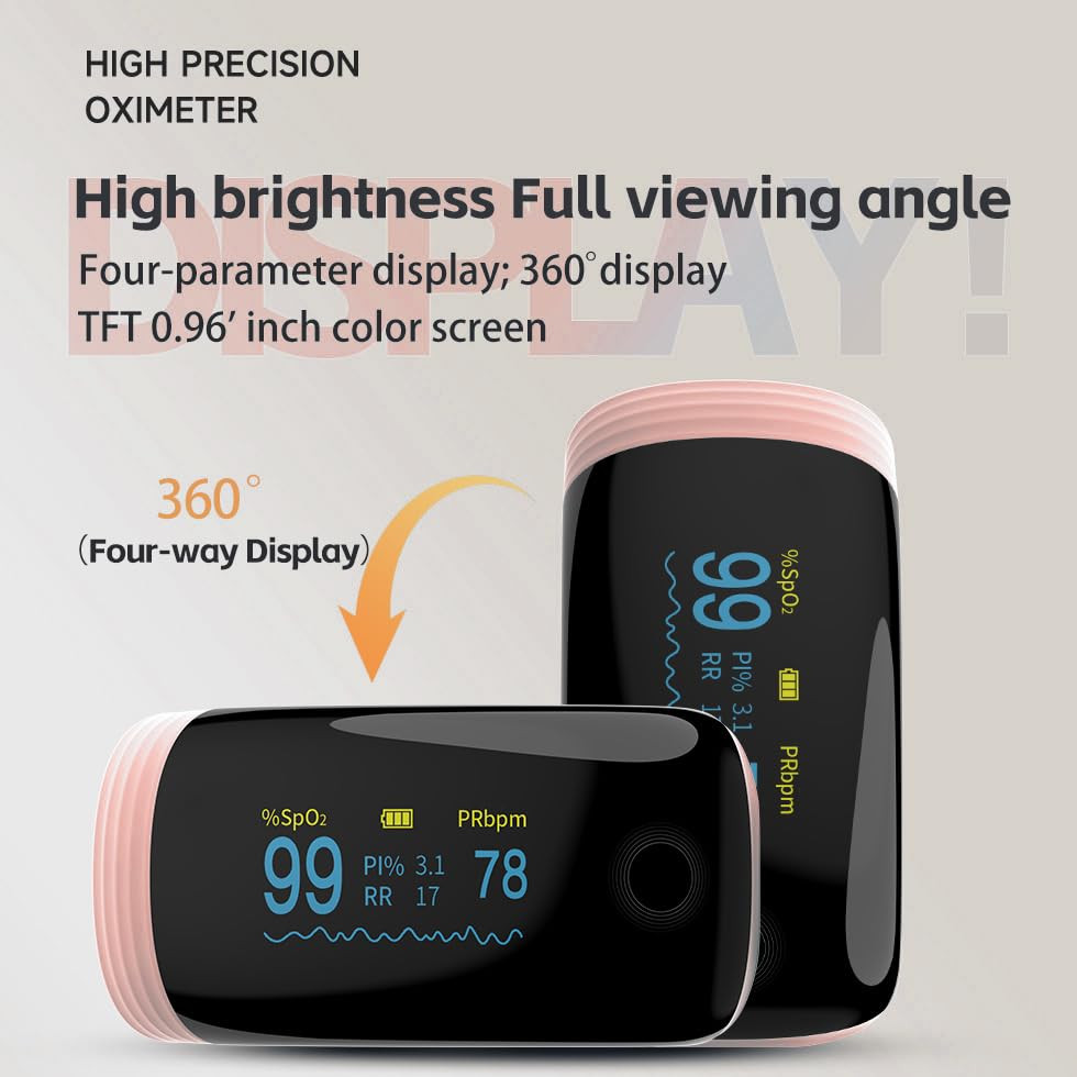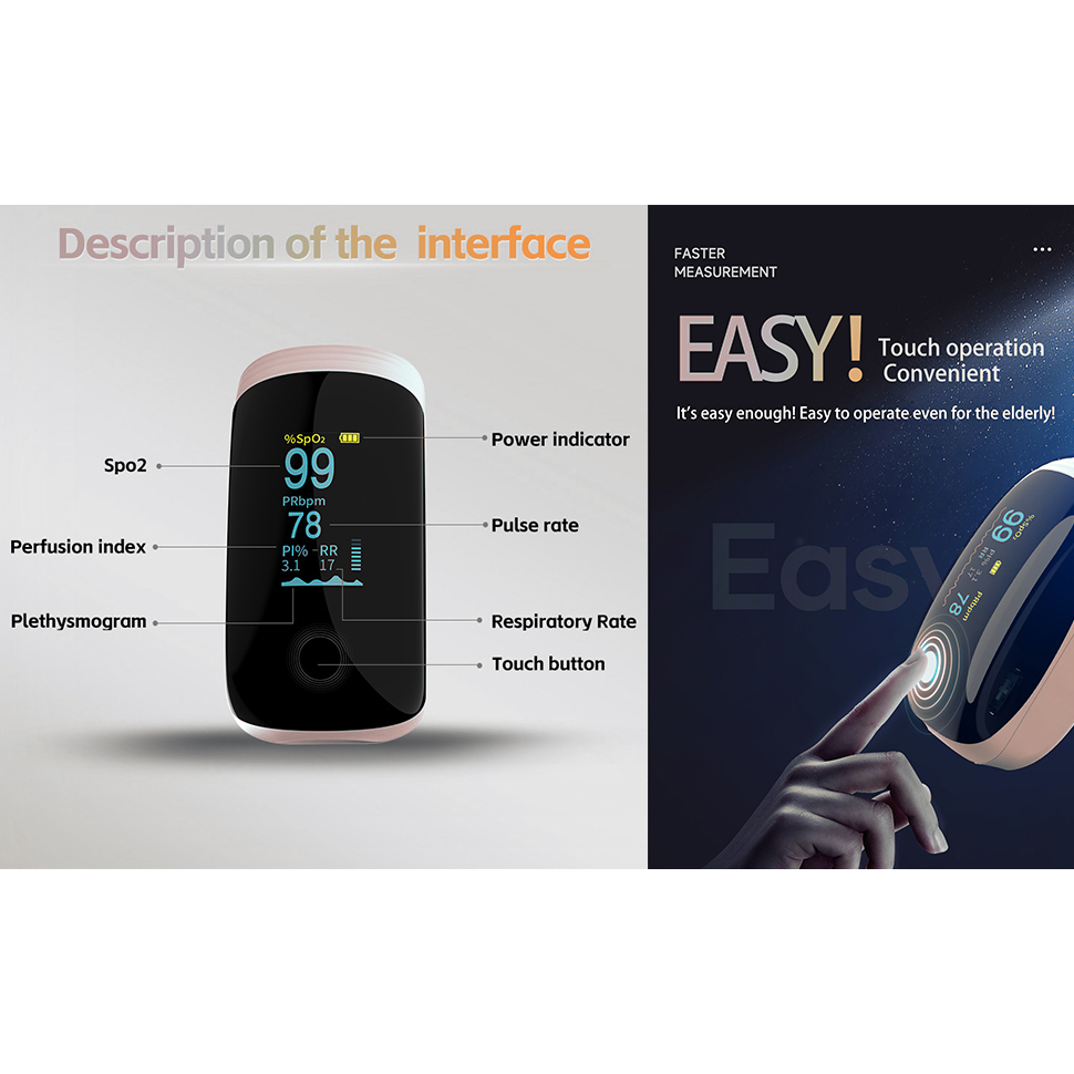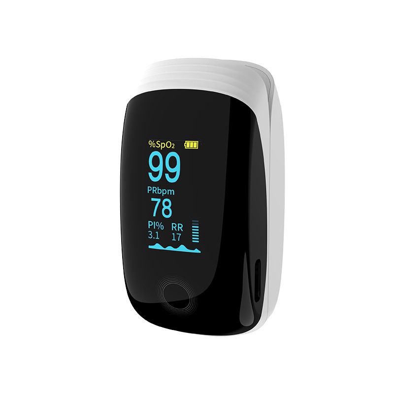 Rechargeable Pulse Oximeter with Respiratory Rate Fingertip Oxygen Monitoring Fingertips with SpO2 Pulse Rate and PI RR Precision Rapid Oximeter SpO2 Readings Outdoor Sports Home