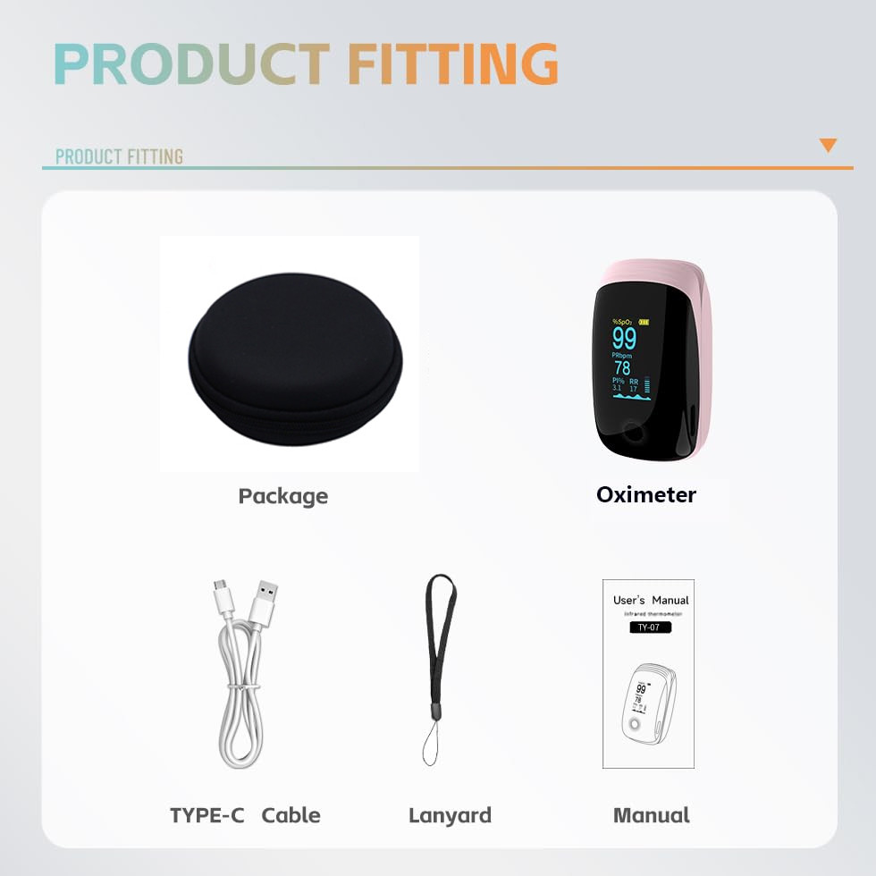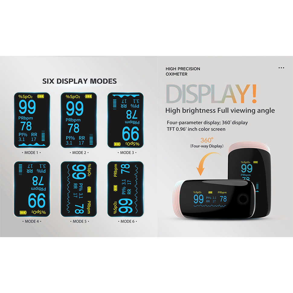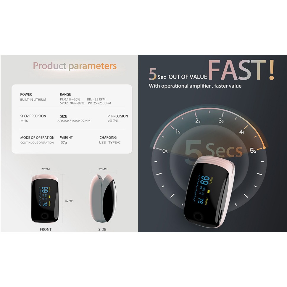 Rechargeable Pulse Oximeter with Respiratory Rate Fingertip Oxygen Monitoring Fingertips with SpO2 Pulse Rate and PI RR Precision Rapid Oximeter SpO2 Readings Outdoor Sports Home