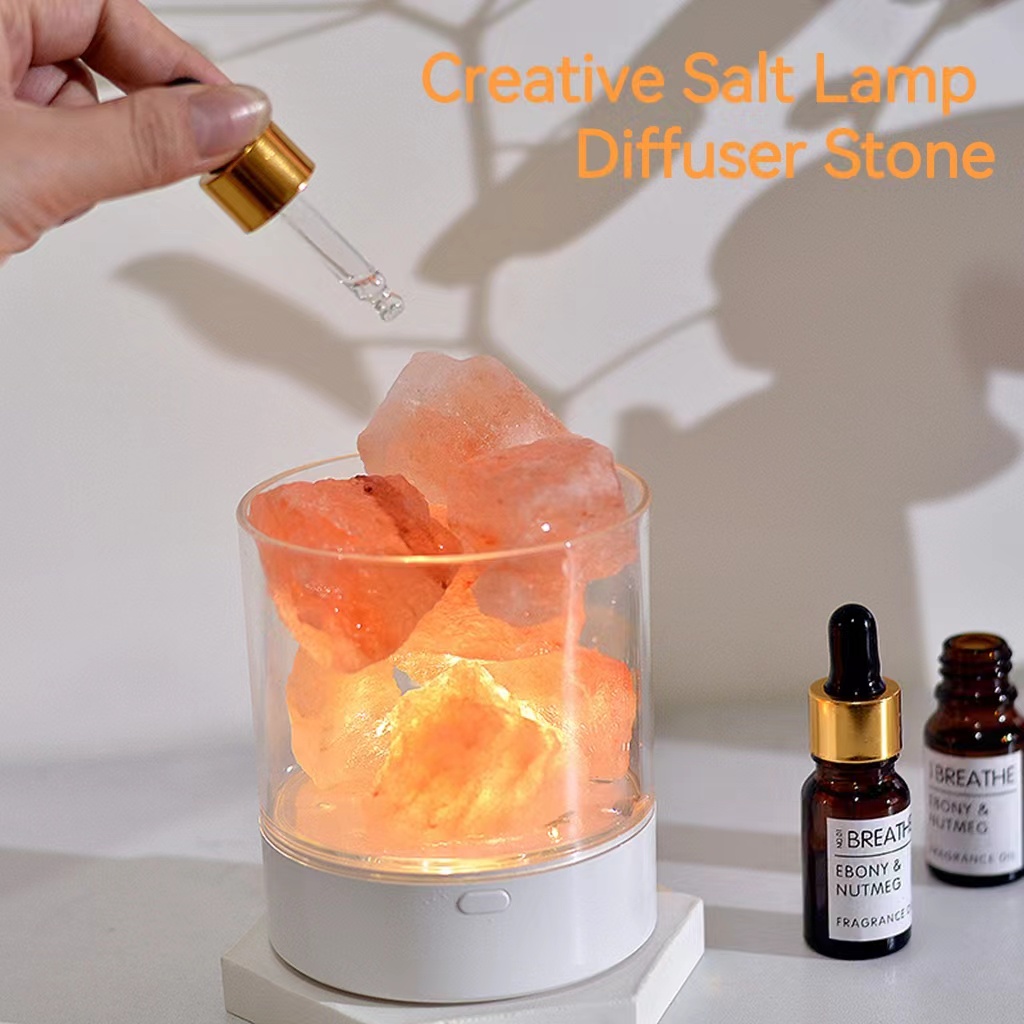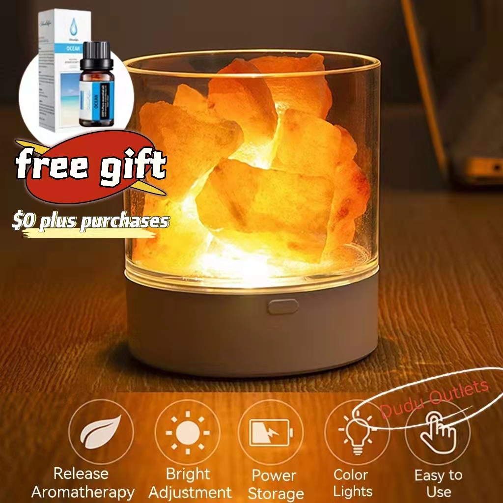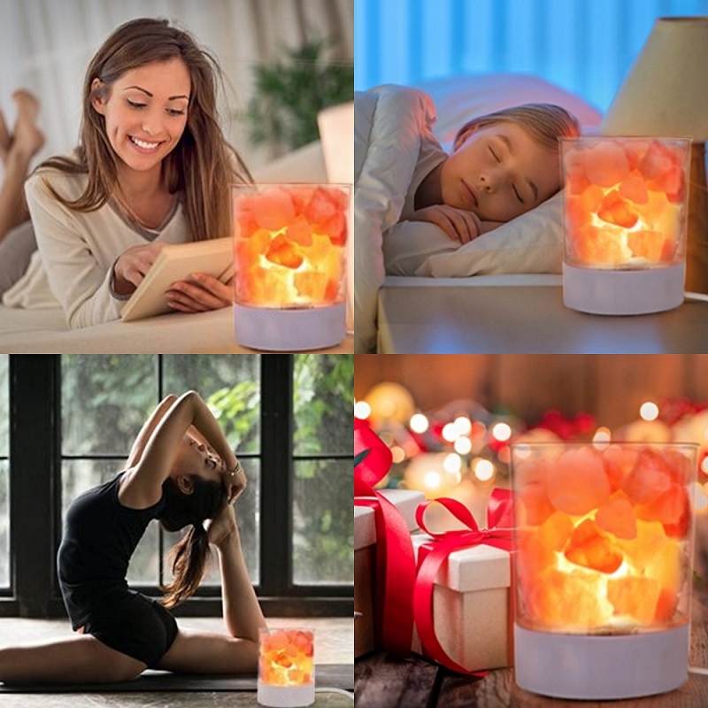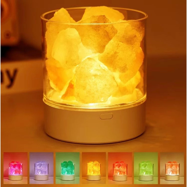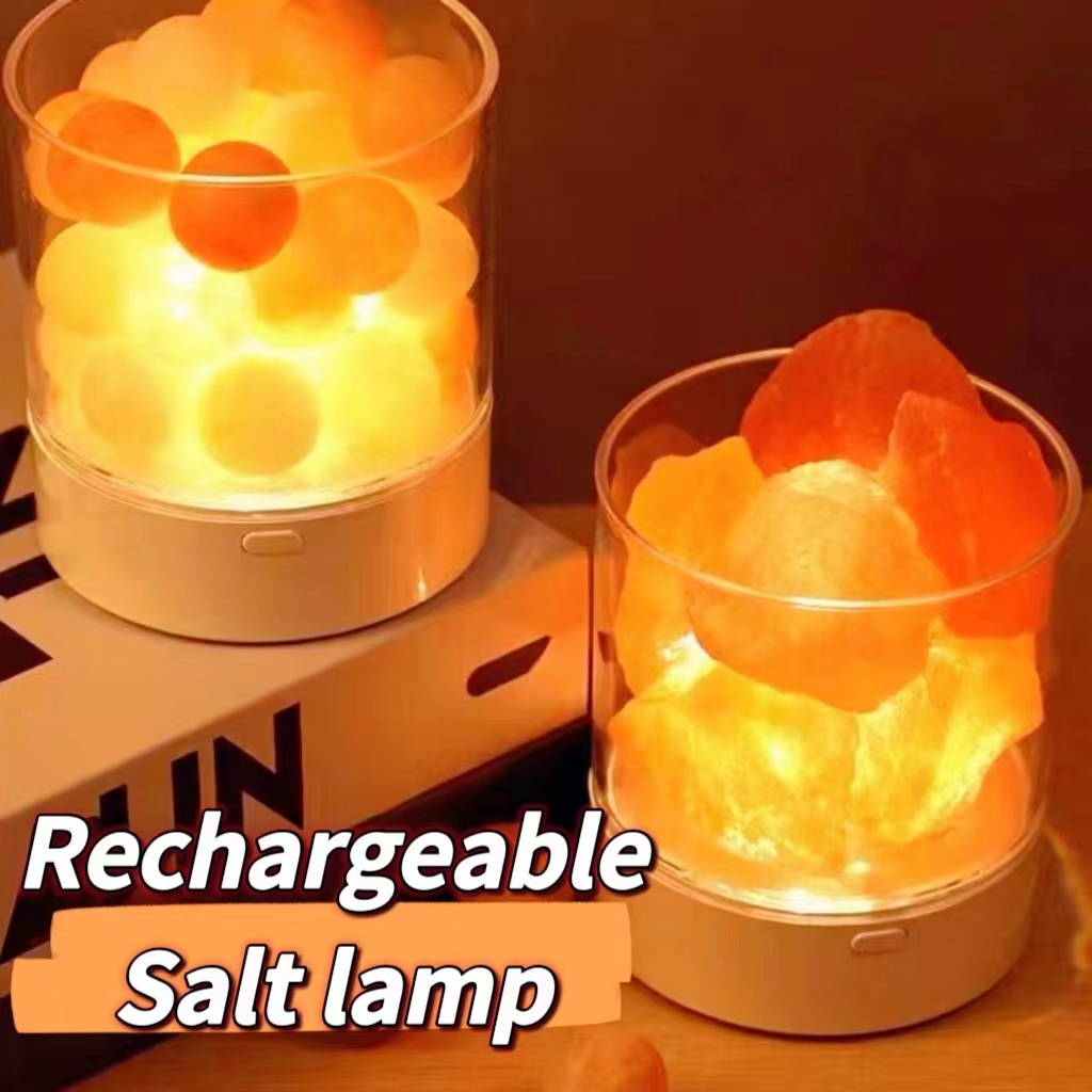 Rechargeable Romantic Himalayan Crystal Salt Lamp, Aroma Therapy Salt Lamp Night Light for Bedroom