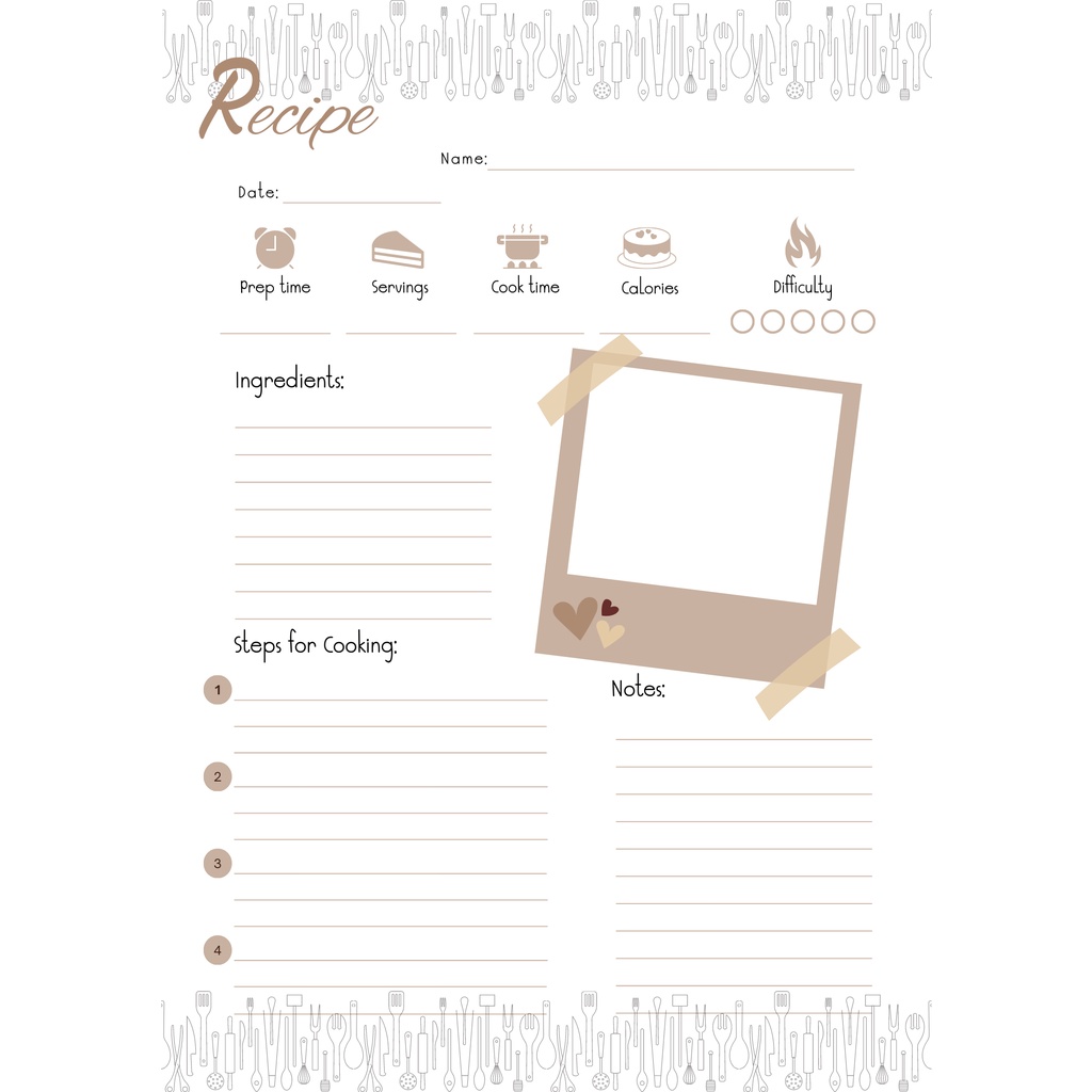 Recipe Record Book – Cooking Journal & Kitchen Notebook for Writing & Storing Recipes