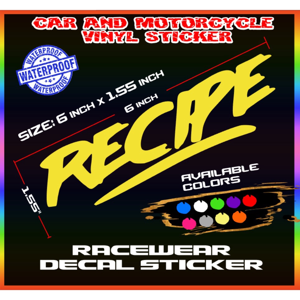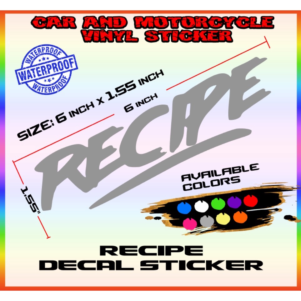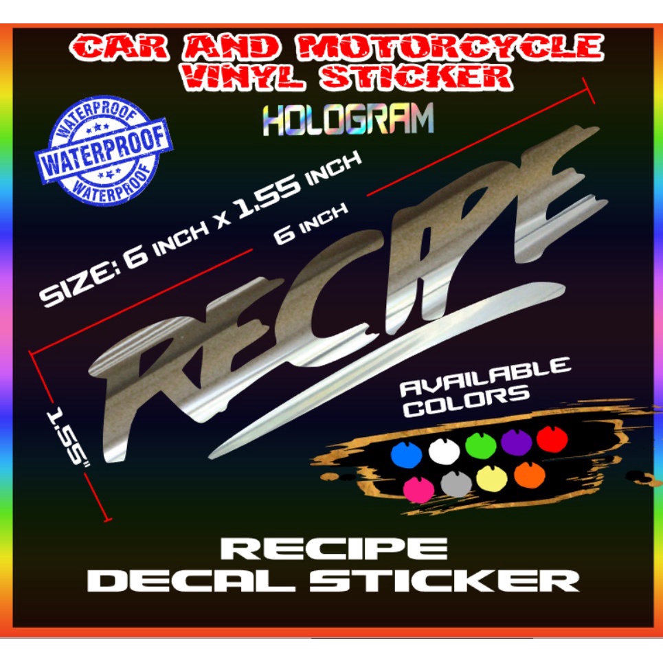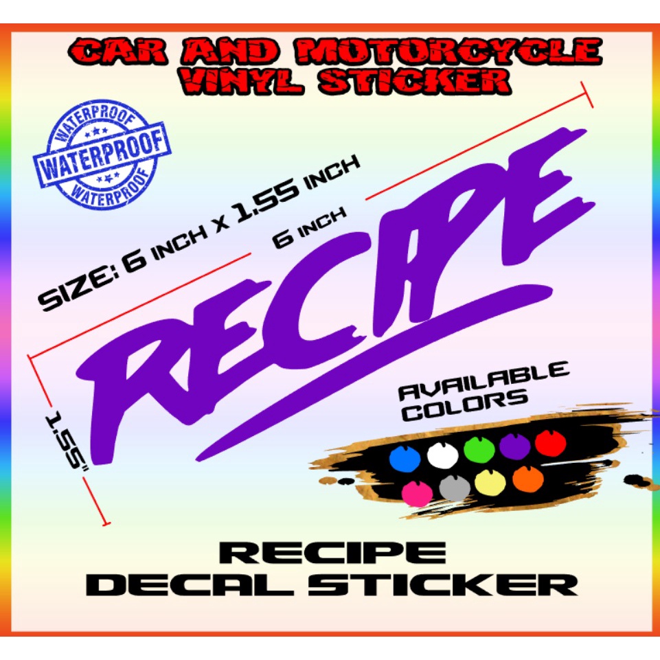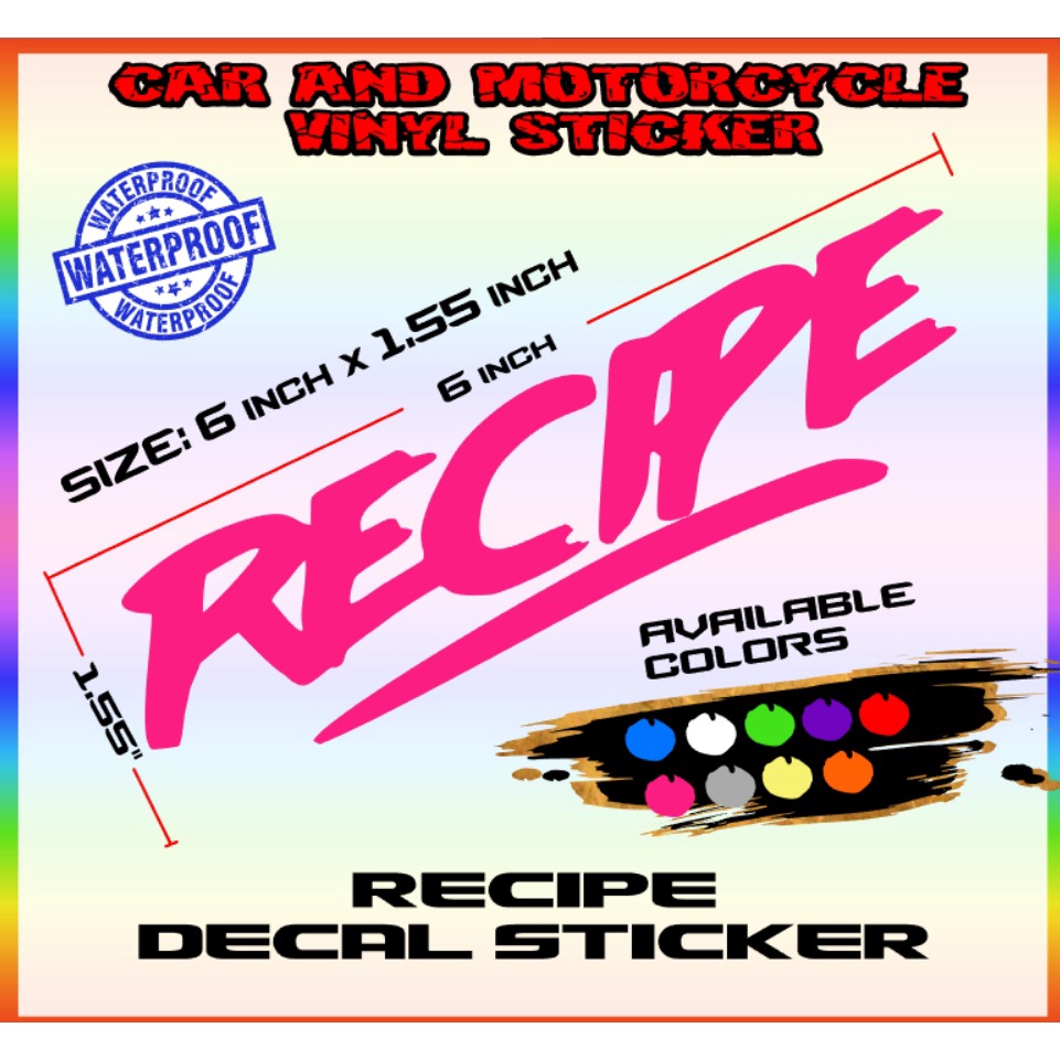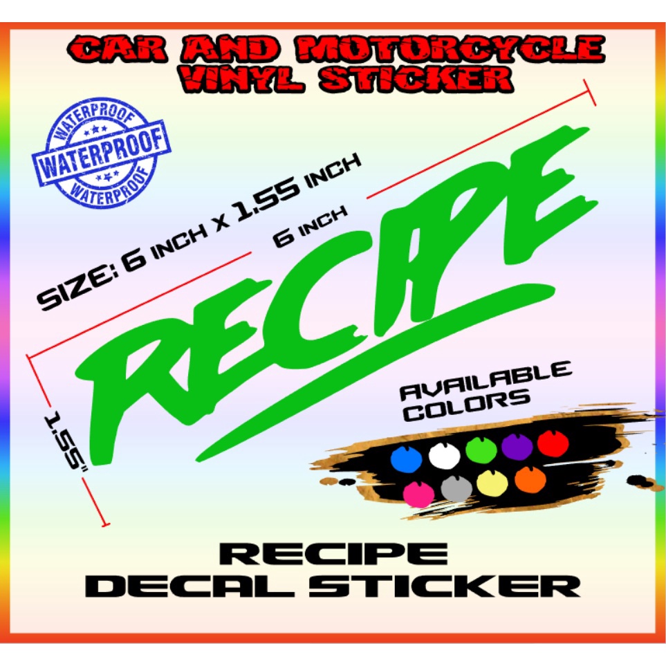 Recipe sticker decals