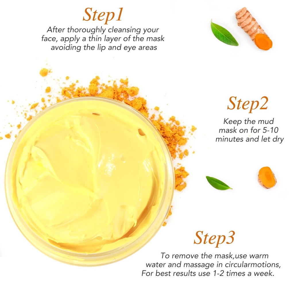 Turmeric Vitamin C Face Mask, Clay Facial Mask with Vitamin C E for Radiant Skin, Acne Control I 9IZ