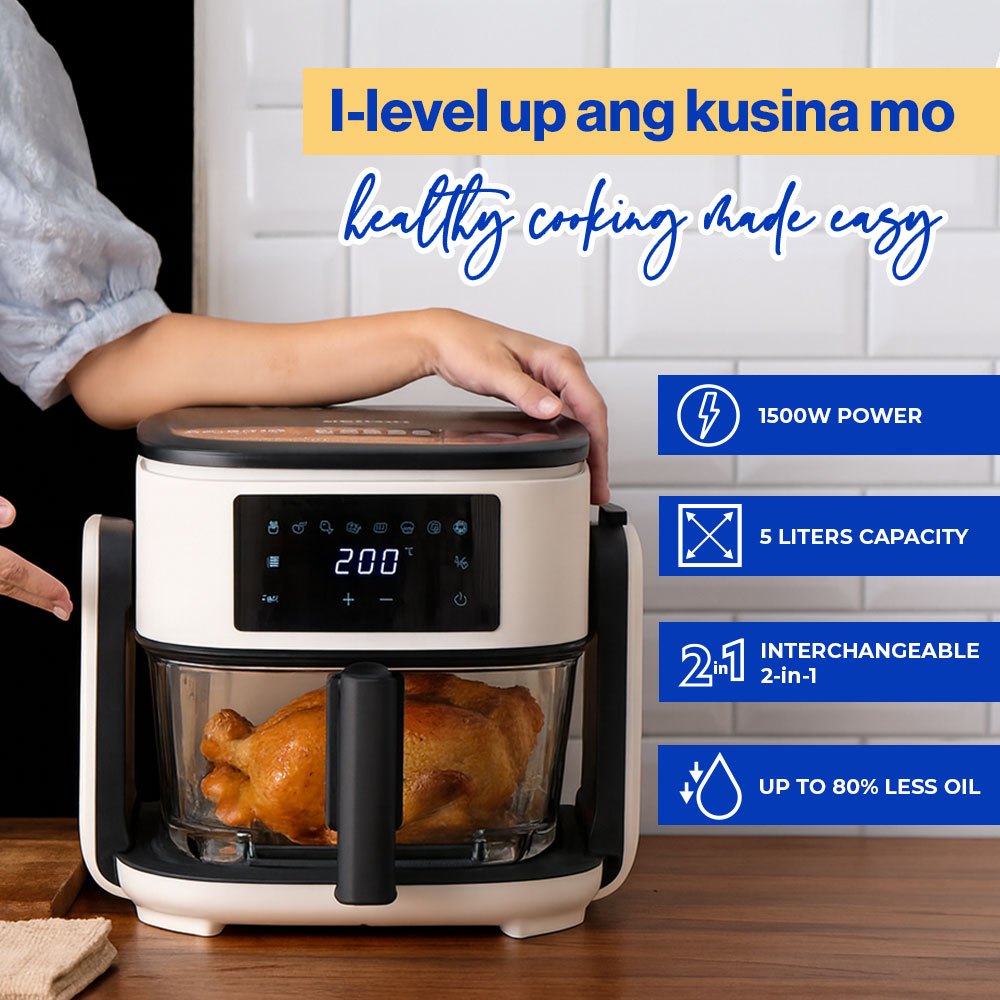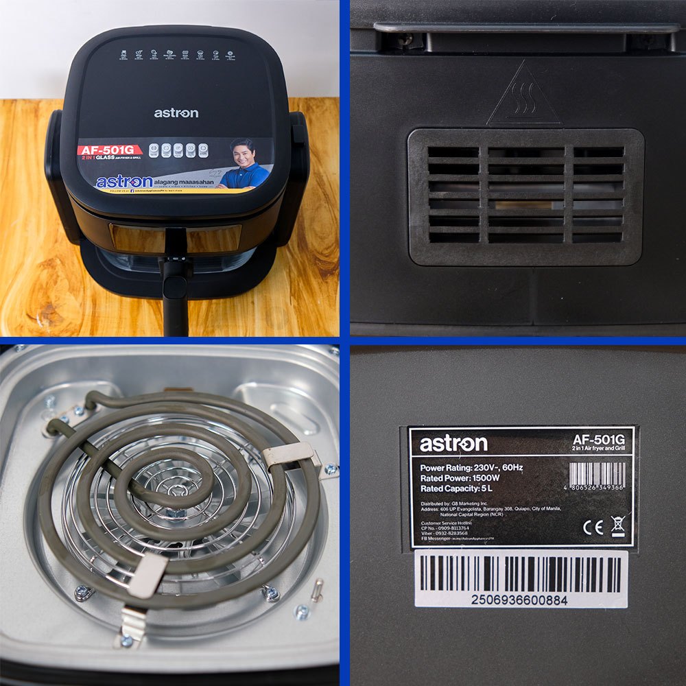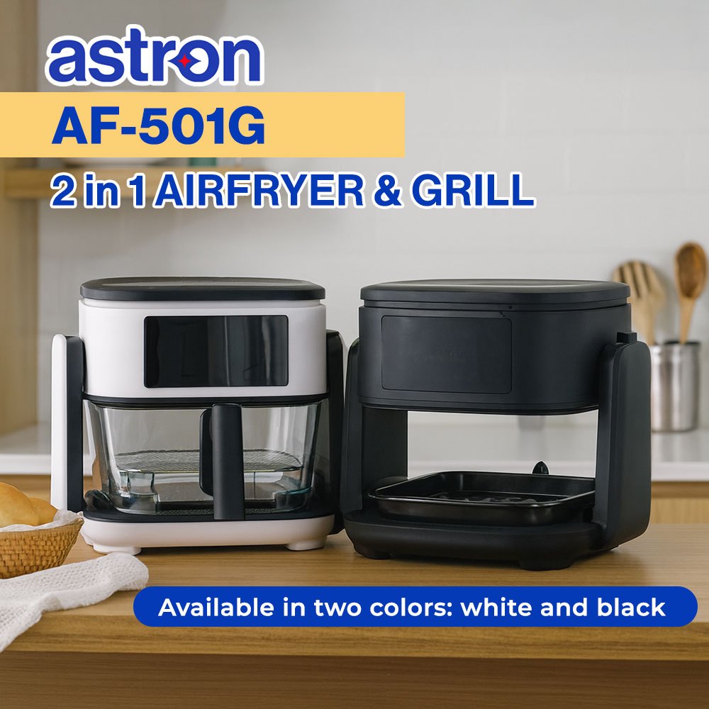 Astron AF-501G | 2 in 1 Air Fryer and Grill | Glass basket | 1500W | 5 Liters capacity