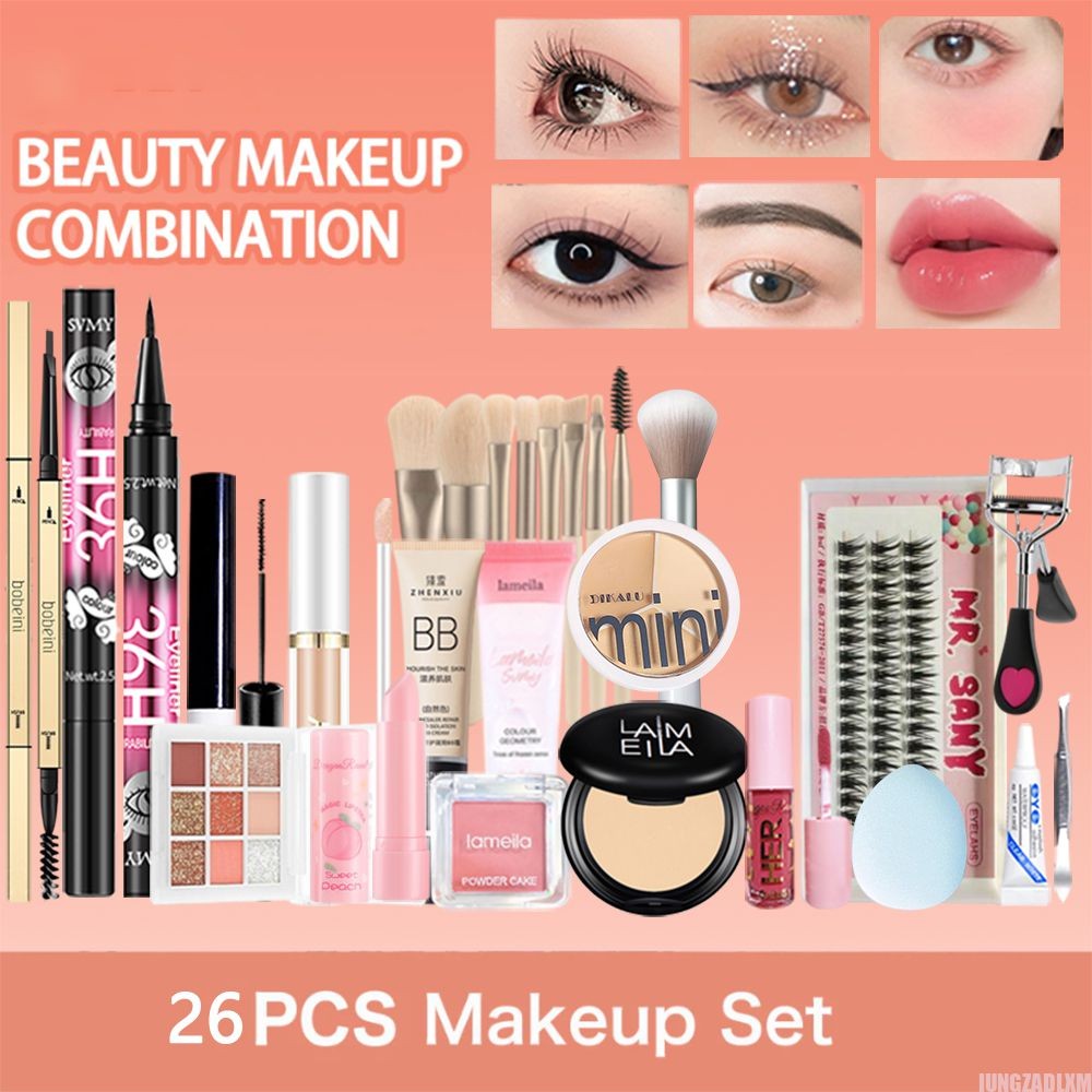 26Pcs Complete Makeup Kit, BB Cream + Concealer, Eyeshadow Palette, Lipstick, Mascara & Brushes