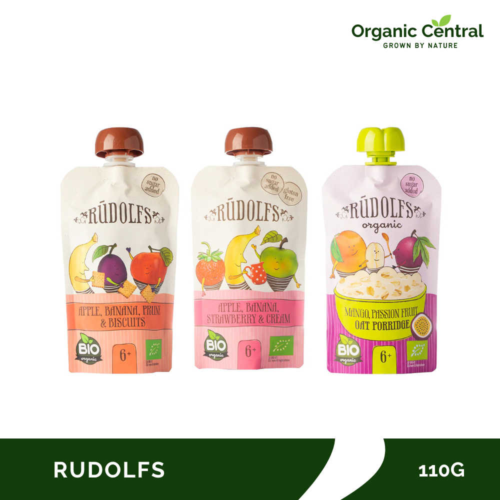 Rudolfs Organic Apple, Banana, Prune Puree with Biscuits 6+ Months Stage 2 110g