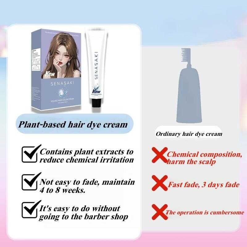 SENASAKI 2-In-1 Color & Care Hair Dye Cream - Keratin Enriched, 98% Less Damage, 100% Gray Coverage