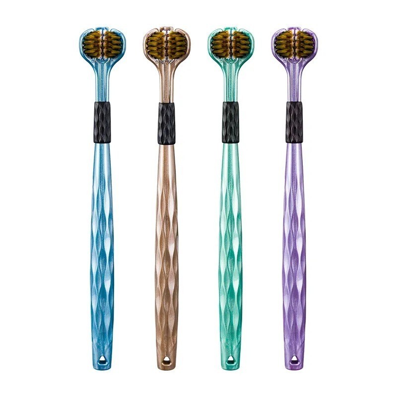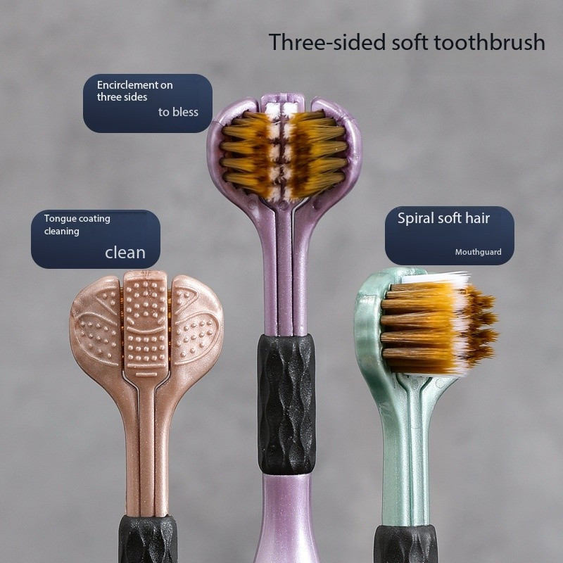 LYQ~Adult 3 Sided Soft Toothbrush 360° Wraparound Cleaning Three Head Toothbrush 3D High quality